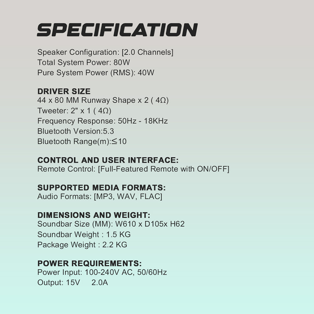 SonicGear SonicBar HD 2000 TV PC Bluetooth 5.3 SoundBar 2.0 Channel Speaker