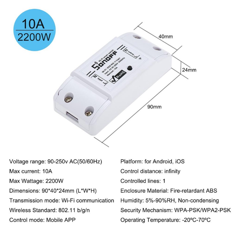 Sonoff Basic R2 10A WiFi wireless control smart switch ewelink Wireless Switch Remote Control Via APP Smart Home adapter