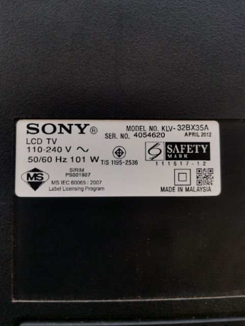 Sony 32" TV Model: KLV-32BX35A / Power Board: APS-317 /Main Board: 1-885-300-11 / Inverter Board: SSI320_4US01