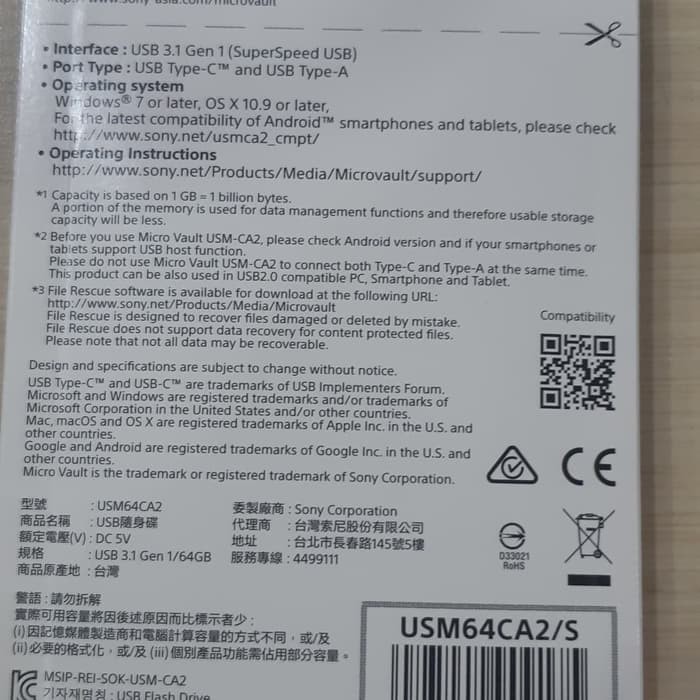 Sony 64GB OTG Type C Flash Drive USM64CA2 Gen 1 USB 3.1 FlashDisk 64GB SONY Flash Disk OTG Type C