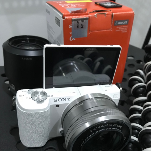 Sony A5100 + E50mm f1.8oss lens + 64gb sd card