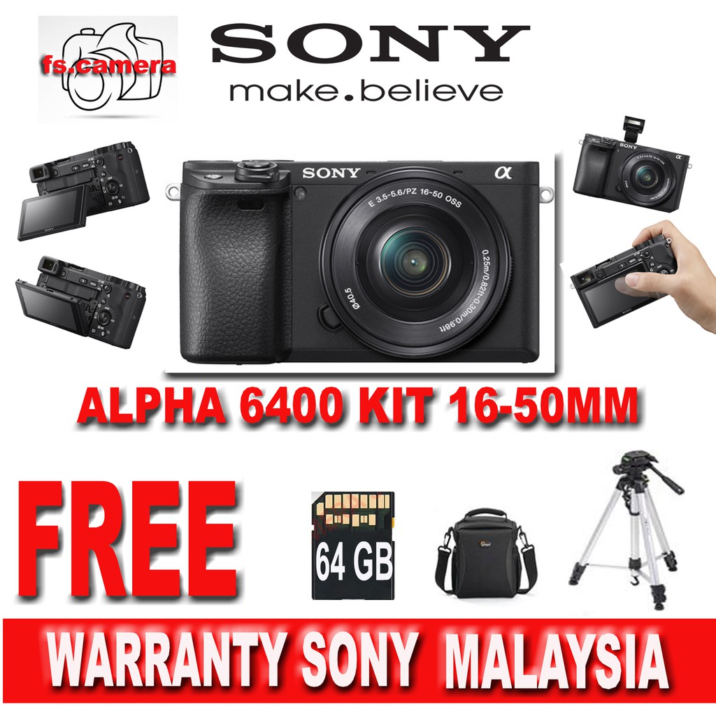 SONY ORI M'SIA A6400KIT(16-50MM)FREE EXTREME PRO SD 64GB+BAG+TRIPOD+UV FILTER+CLENING SET