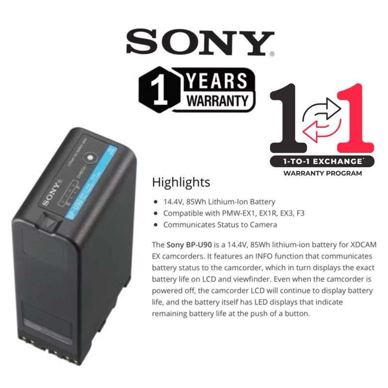 Sony BP-U90 BPU90 Battery Pack 14.4V 85Wh Lithium-ion for Sony pro camcorder(1 YEARS WARRANTY)