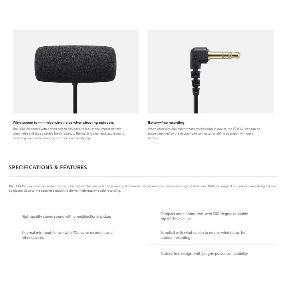 Sony ECM-LV1 Compact Stereo Lavalier Microphone with 3.5mm TRS Connector