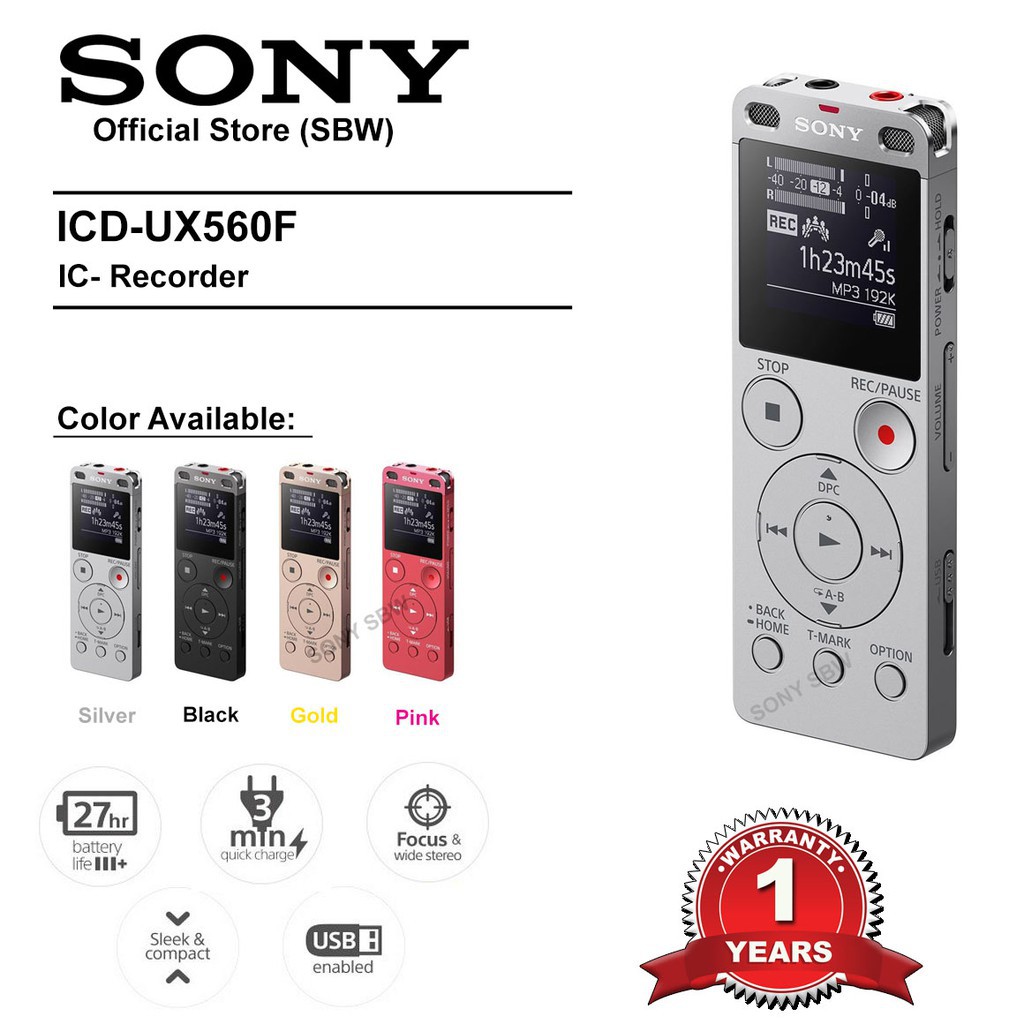 Sony ICD-UX560F 4GB Digital Voice Stereo IC Recorder with Built-in USB Black(SONY WARRANTY)