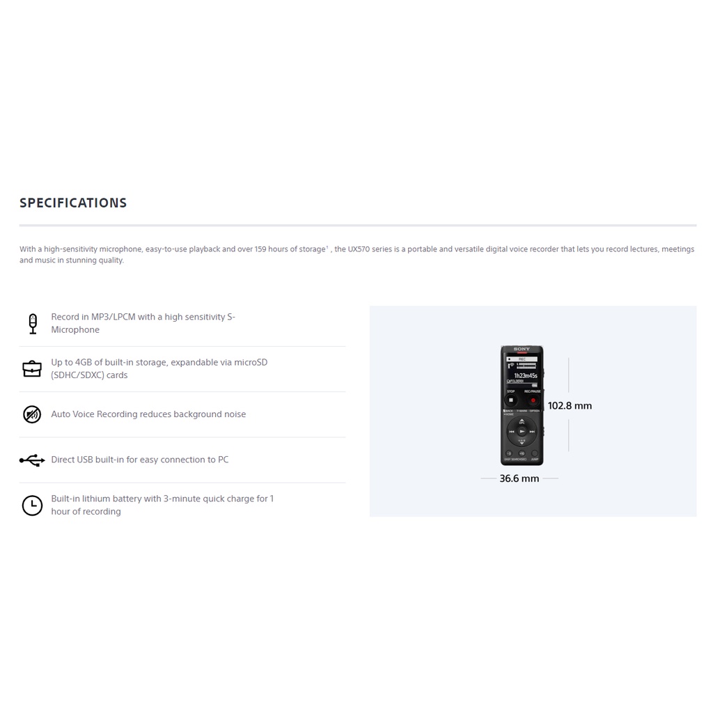 Sony ICD-UX570F Digital Voice Recorder (Original) 1 Year Warranty by Sony Malaysia