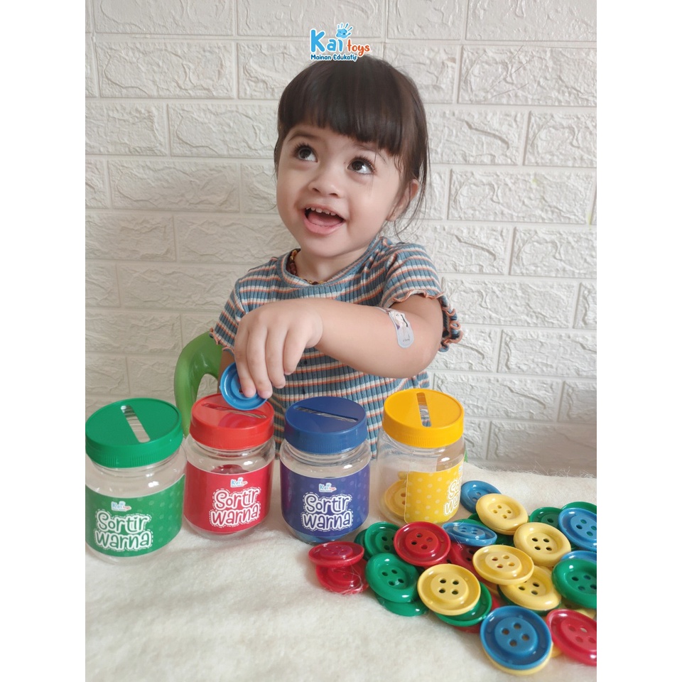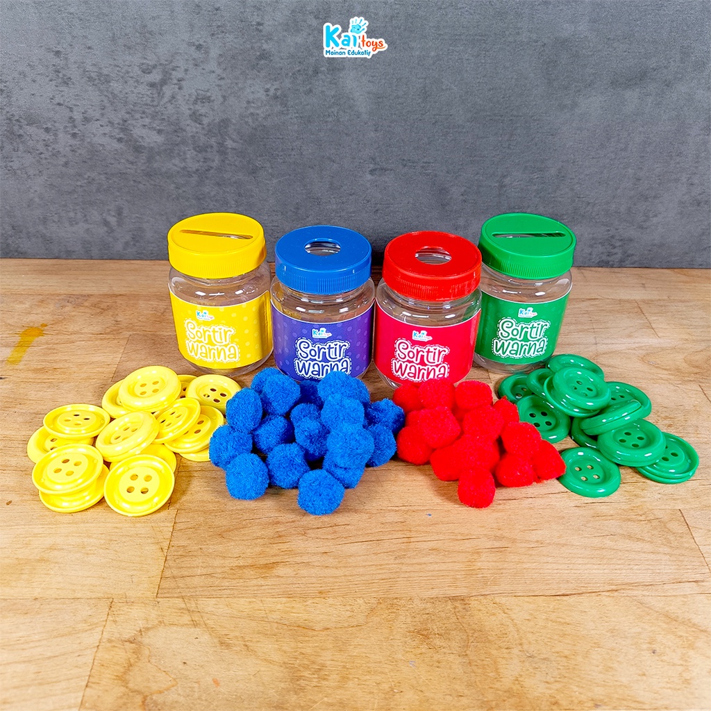 Button Sorting Pompom Sorting/ Color Sorting/ Montessori Educational Toy/ Getting to Know Colors Busy Jar preschool activity Educational Toys for 2 Year Old Children Train Smooth Motor Skills