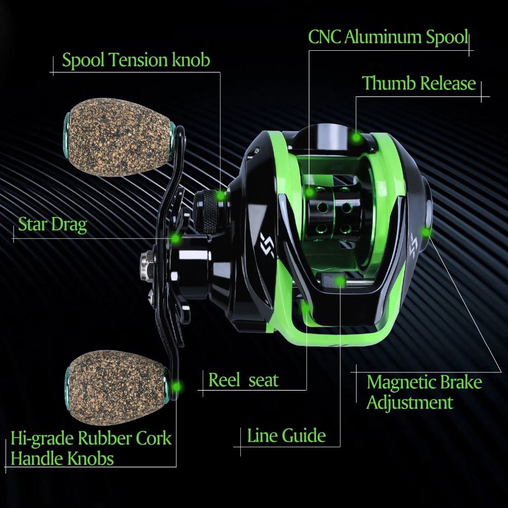 Sougayilang 1.8-2.1M Casting Telescopic Fishing Rod Set 7.2:1 Baitcasting Reel Combo Travel Fresh/Saltwater Fishing Set