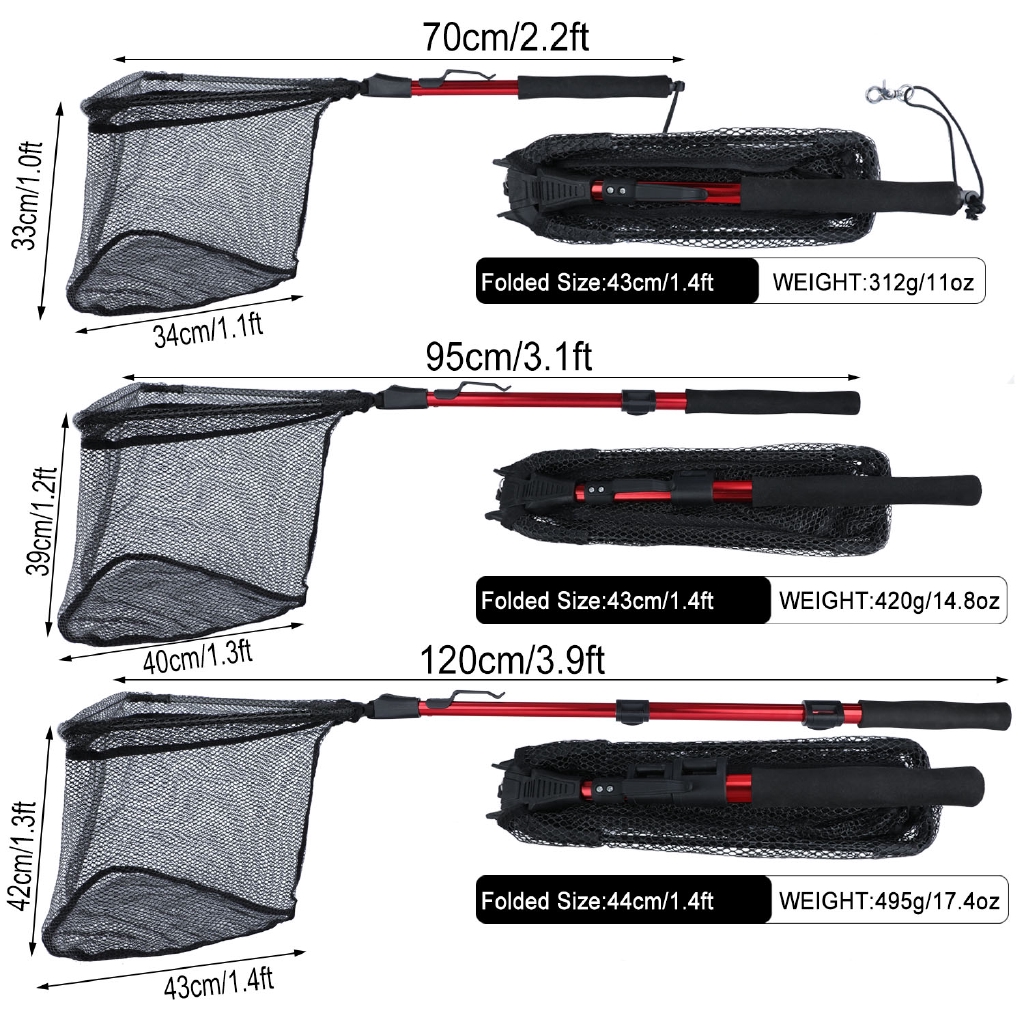 Sougayilang Fishing Net Landing Triangular Folding Net Telescoping Pole Rubber Coated Net Network (57cm/95cm/115cm)