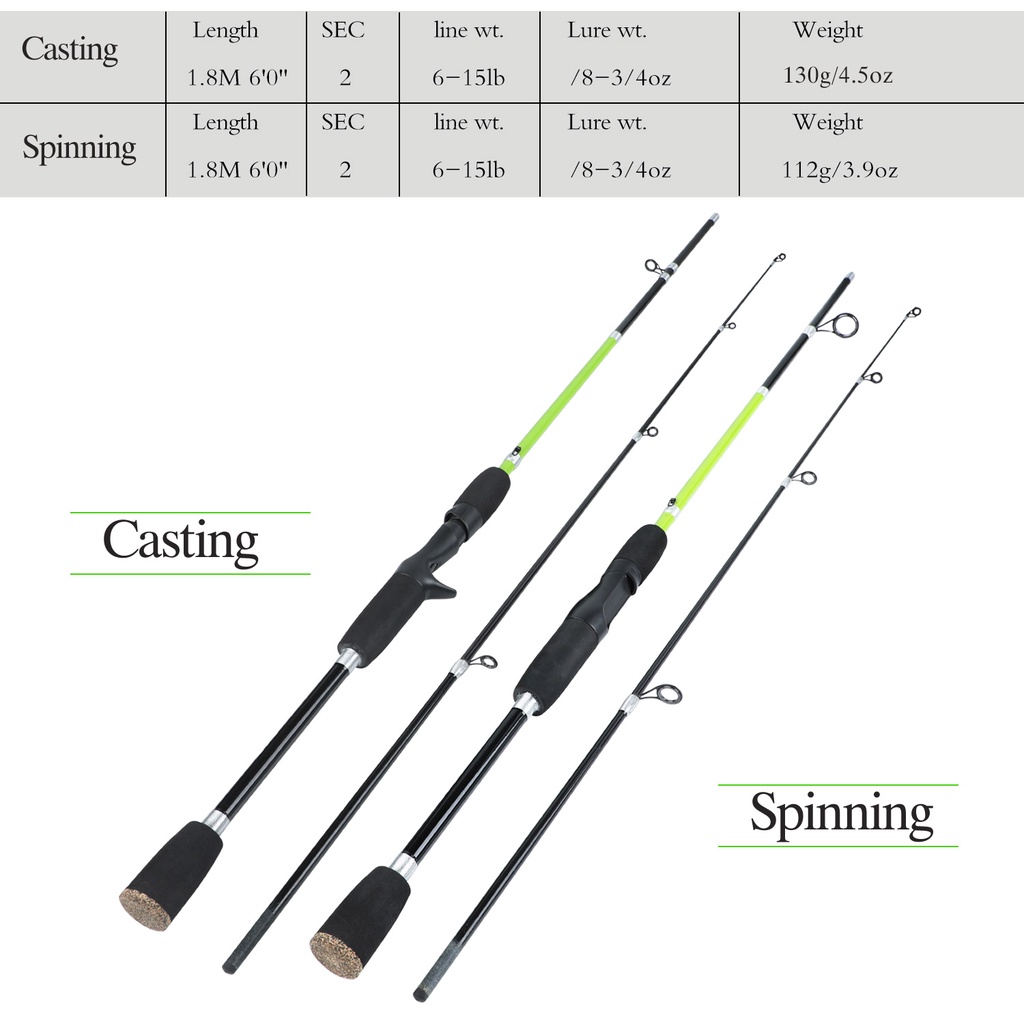 Sougayilang Spinning/Casting Fishing Rod M Power Carbon For Freshwater Fishing (1.8M/6ft)