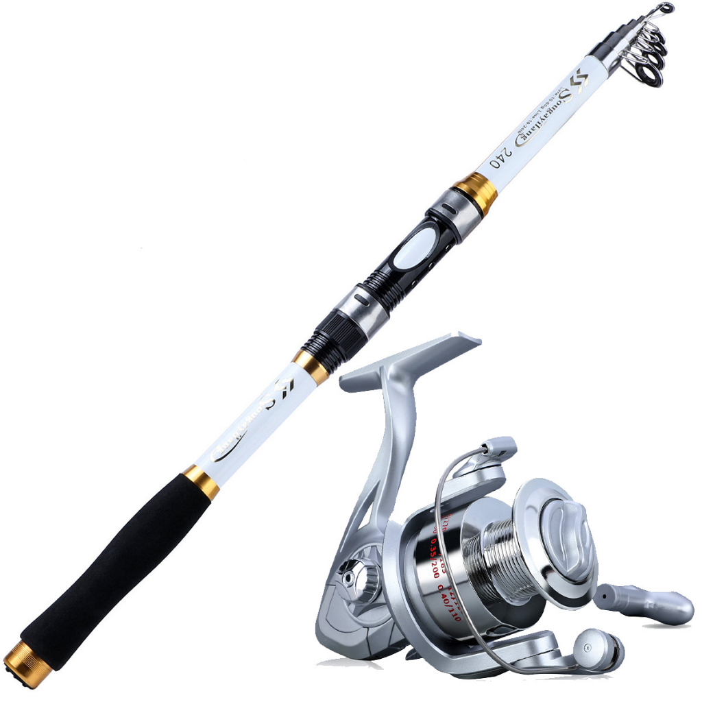 Sougayilang Telescoping Fishing Rod Set Fiberglass With Eva Handle 5.2:1 Gear Ratio Reel - 4 Color (1.8M-3.3M)