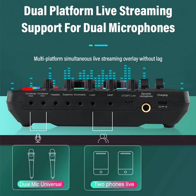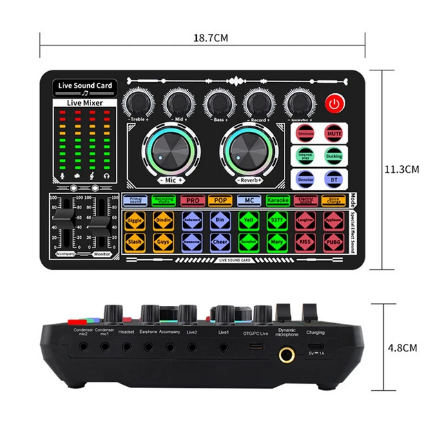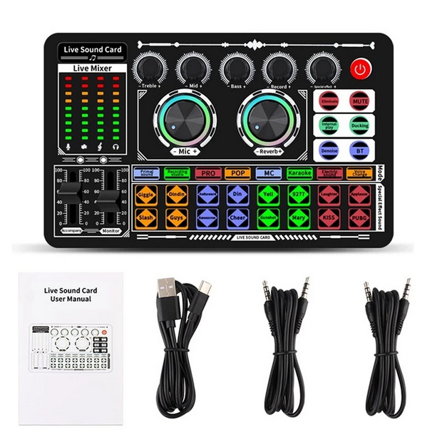 Sound Card F999 Mini Mixer Audio Podcast Microphone Audio Intereface Soundcard Noise Cancelling With Live Sound Effect