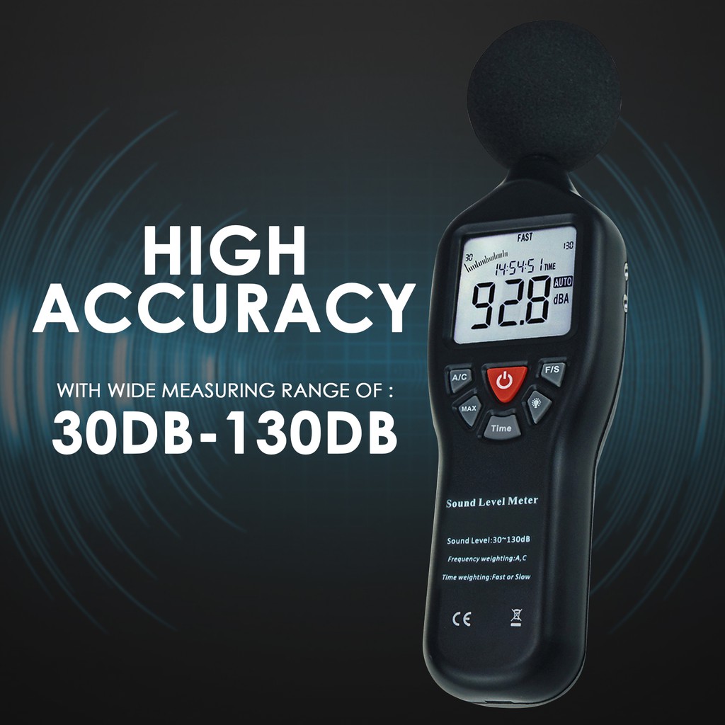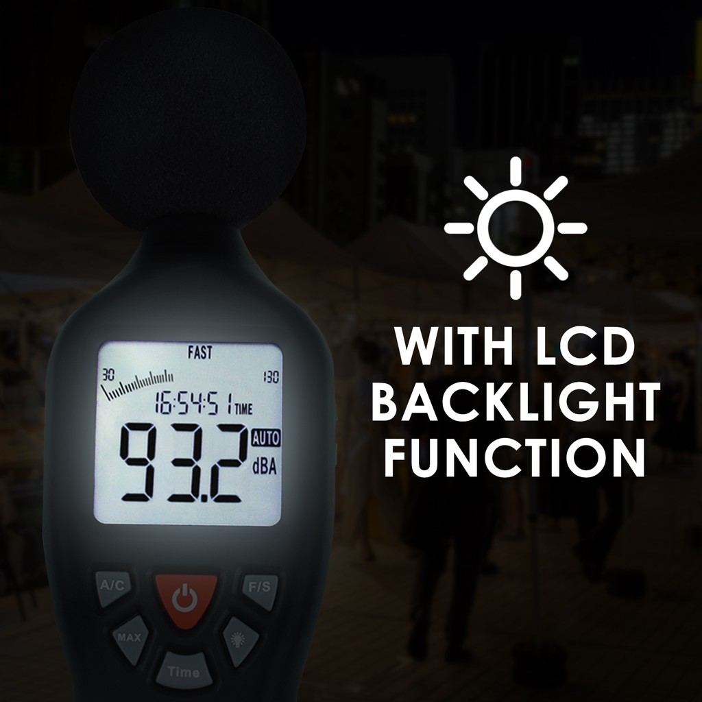 Sound Level Meter with Backlit Display High Accuracy Measuring 30dB-130dB Compact Instrument