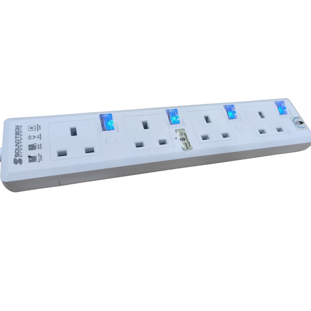 Soundteoh PS-114 SIRIM Approved 4 Gang / 4 Way Extension Power Socket Outlet 2M Heavy Duty Trailing Socket