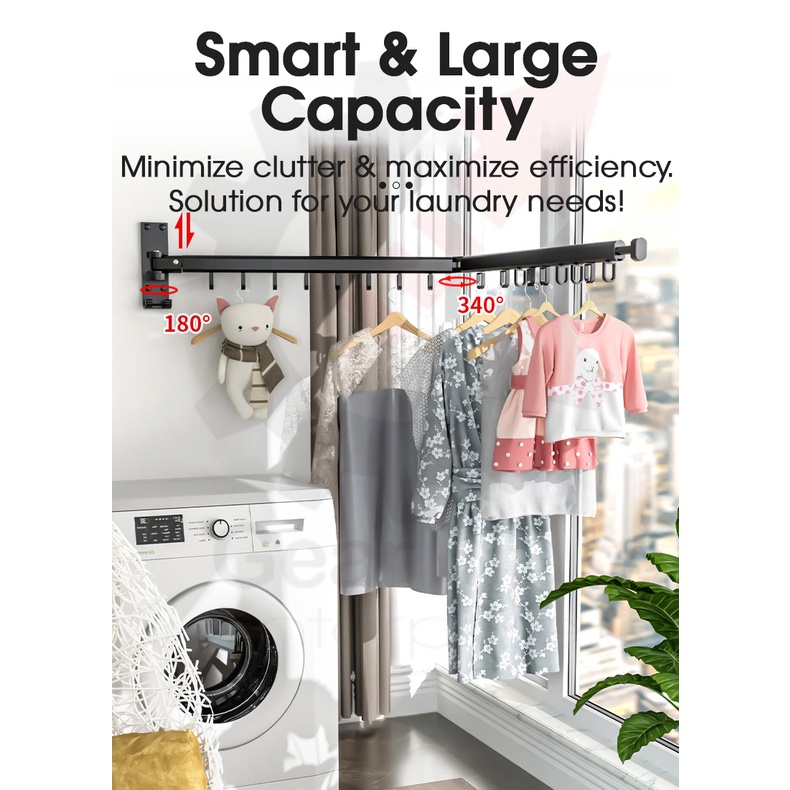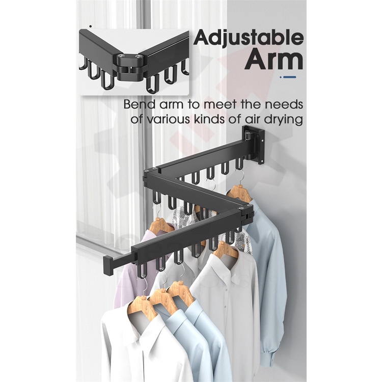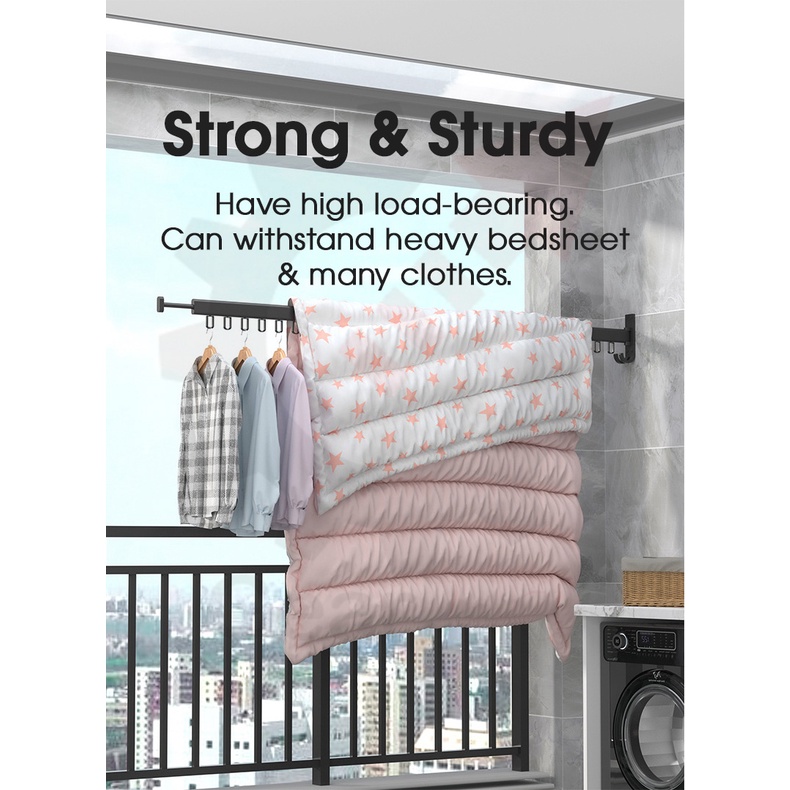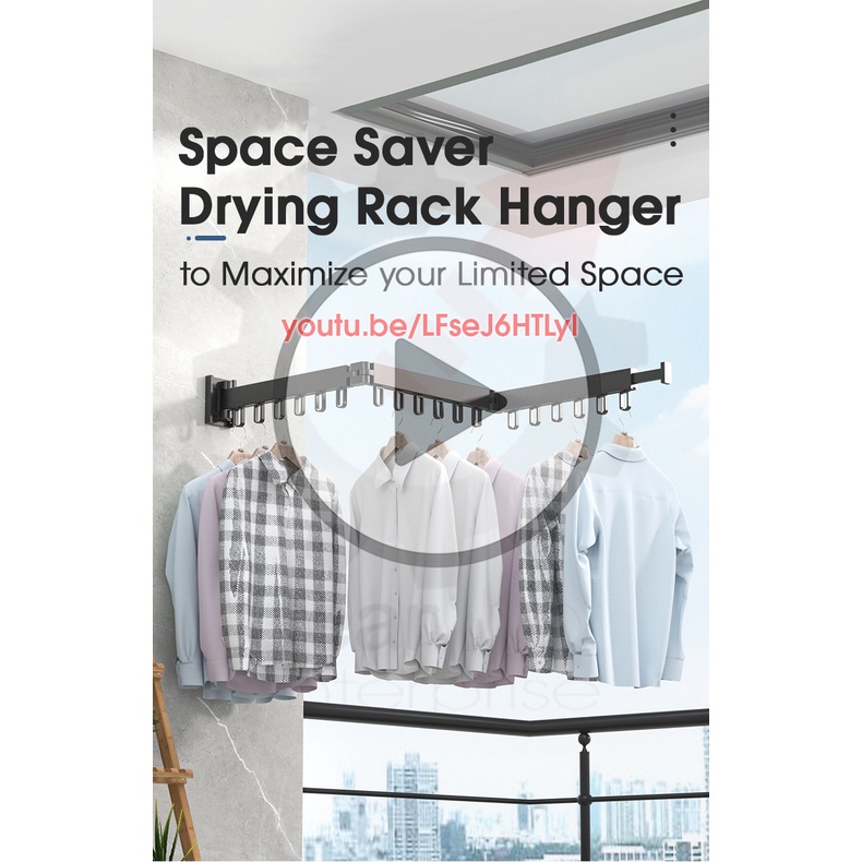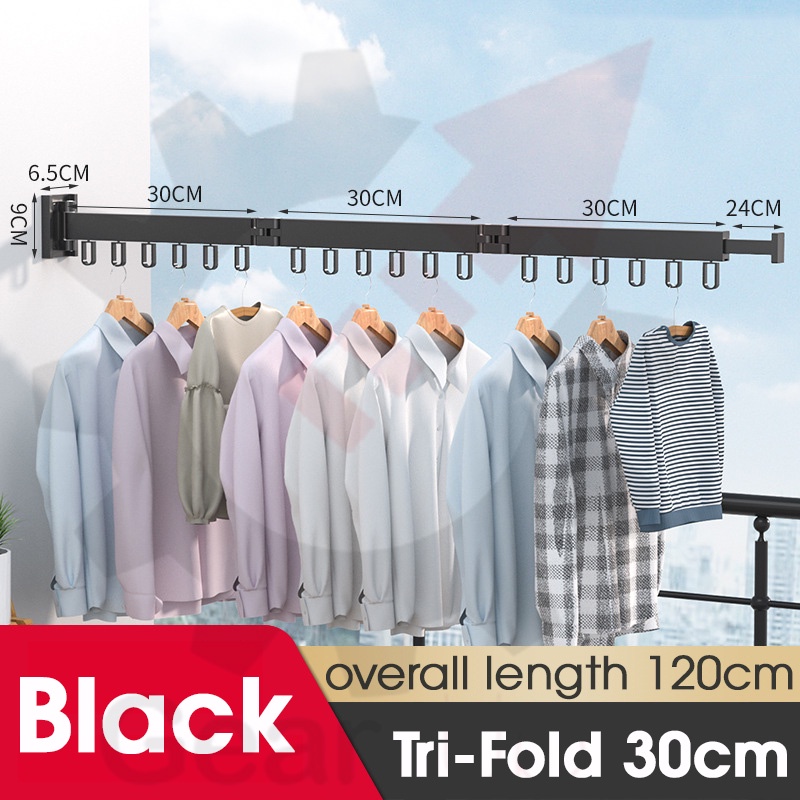 Space Saver Wall Mounted Tri-Fold Clothes Drying Rack Hanger for Laundry in Balcony, Indoor & Outdoor (3*30cm or 3*60cm)