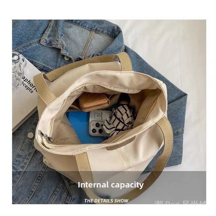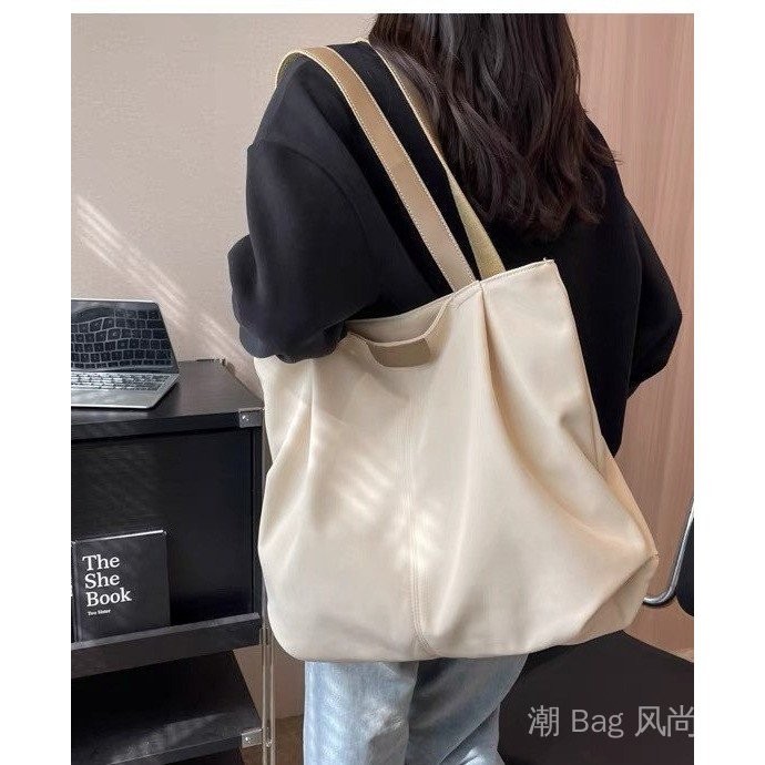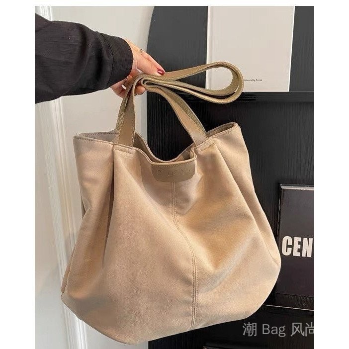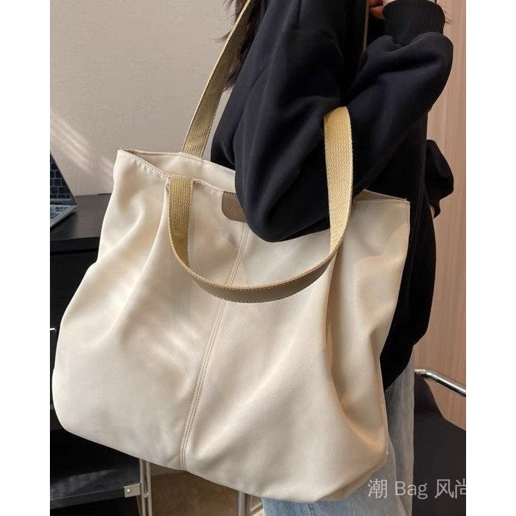 Spacious Canvas Tote Bag - Casual Summer Shoulder Purse for College Girls, Minimalist Student Book Bag with Crossbody Strap