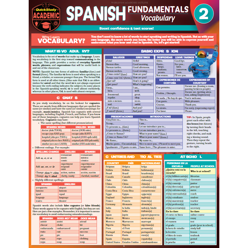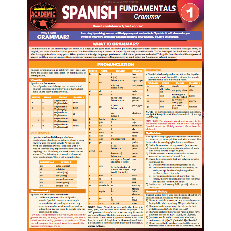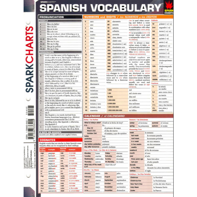 Spanish (Cheat Sheet) - Laminated