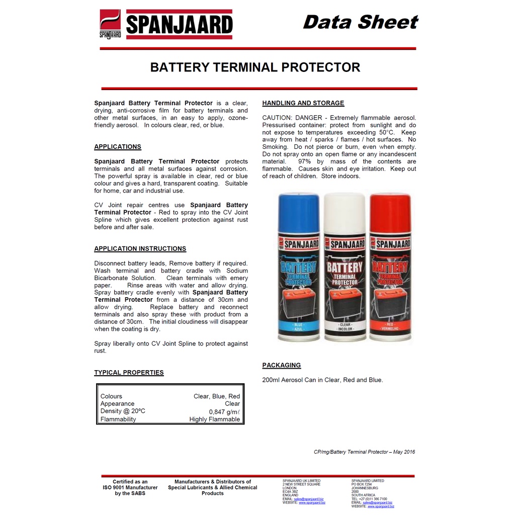 Spanjaard Battery Terminal Protector Spray (200ml)