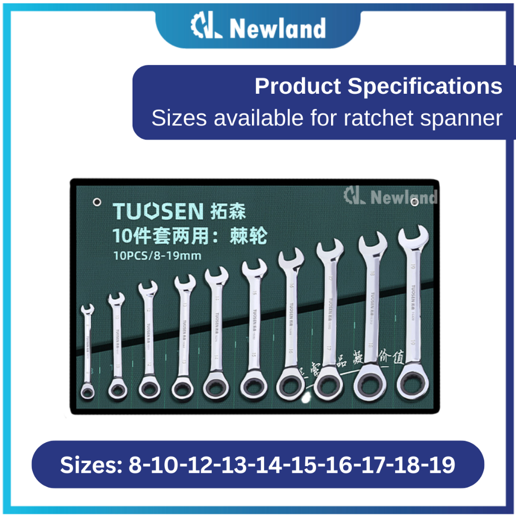 Spanner Ratchet Set - Heavy Duty 10pcs (8 - 19mm) 72-Tooth Spanar Rachet