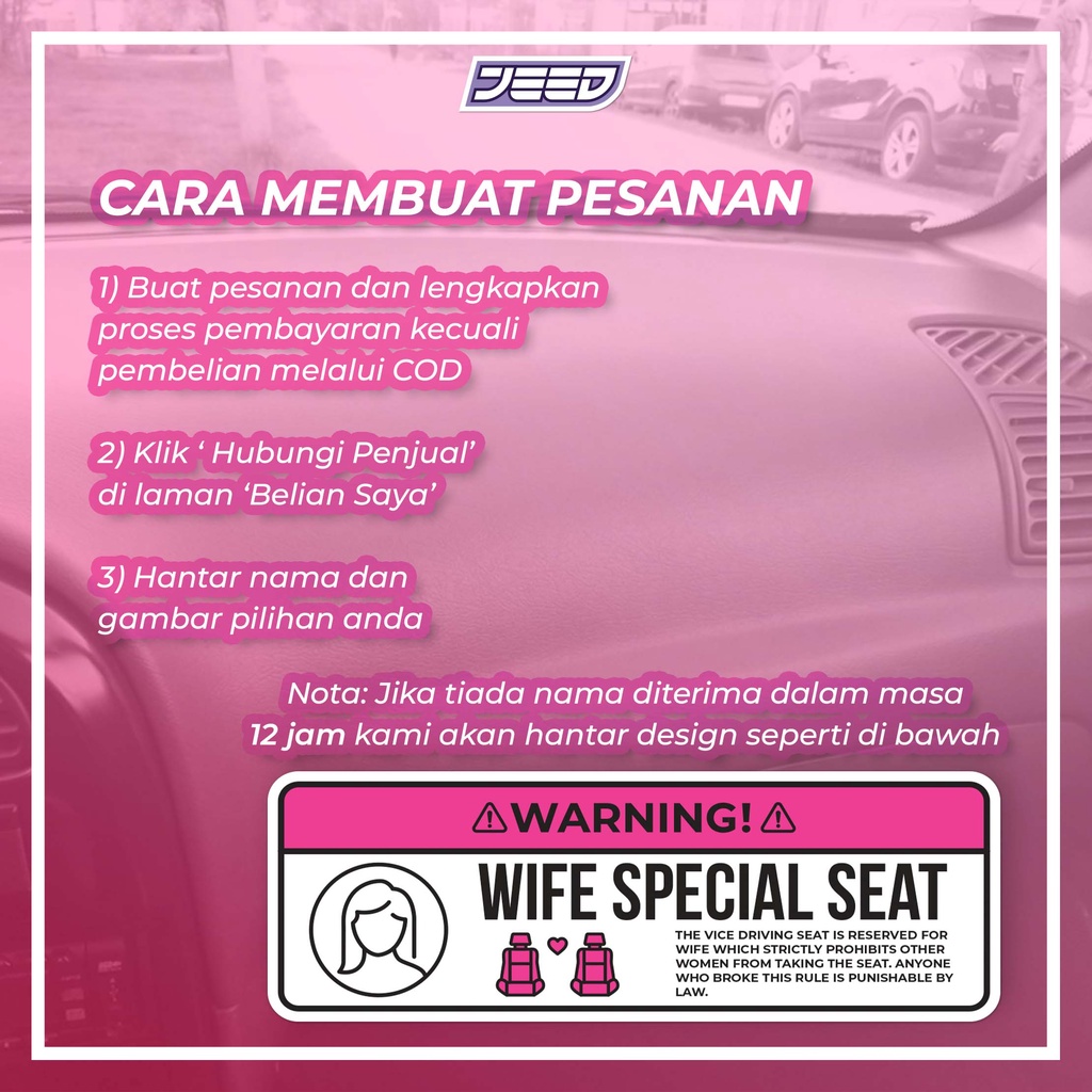 Special Seat Viral Customized Dashboard Sticker Reserve Seat Girlfriend Wife Viral Tiktok Instagram Sticker