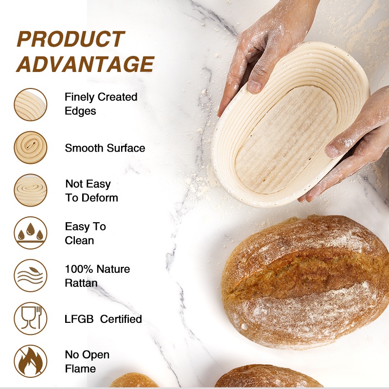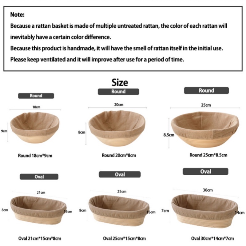 Specool-Bread Fermentation Basket Bread Proofing Basket With Cloth Liner Round /Oval Natural Rattan Fermentation Basket