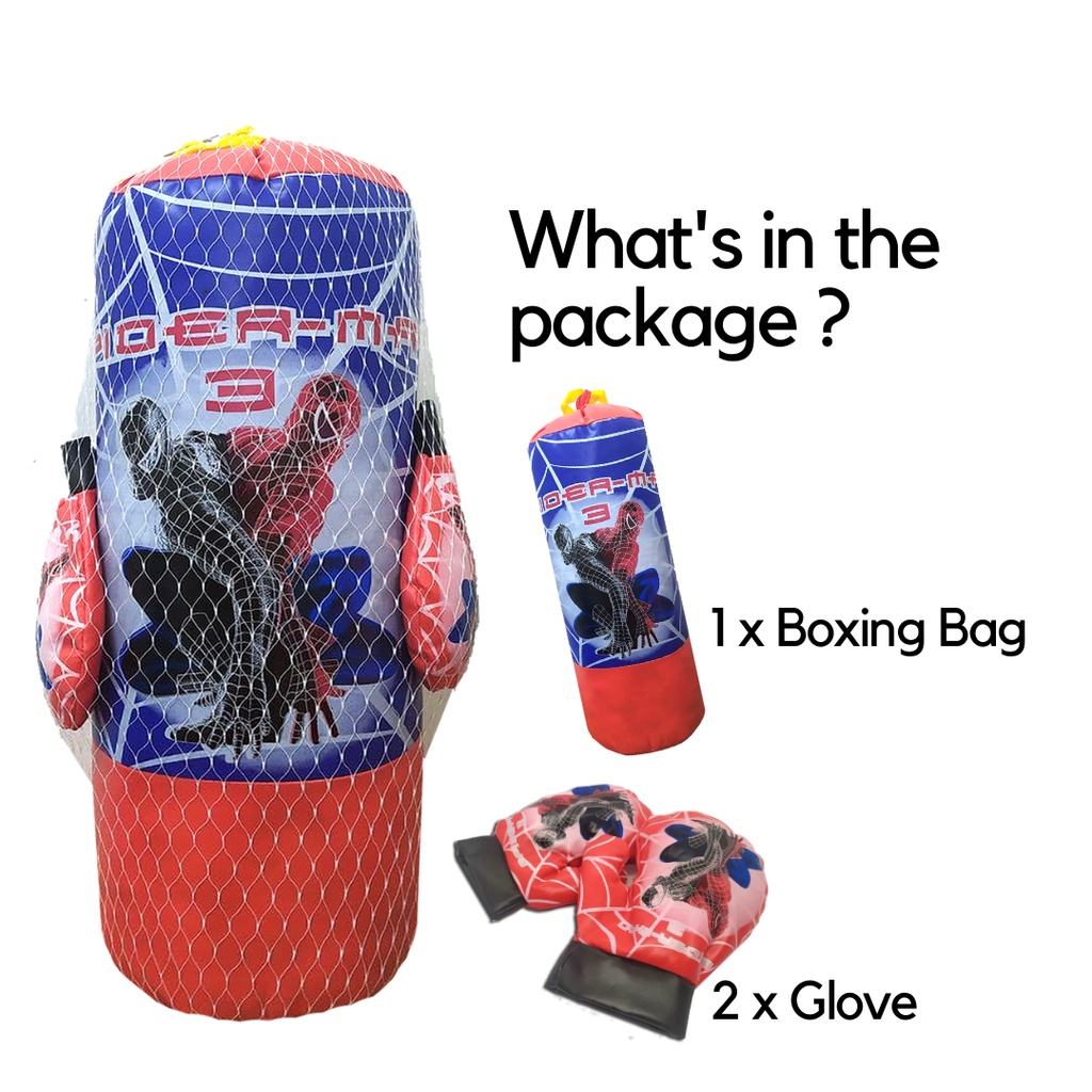 Spiderman Boxing Punching Bag Set For Children & Kids With Boxing Gloves/Set Tinju Spiderman Mainan Budak