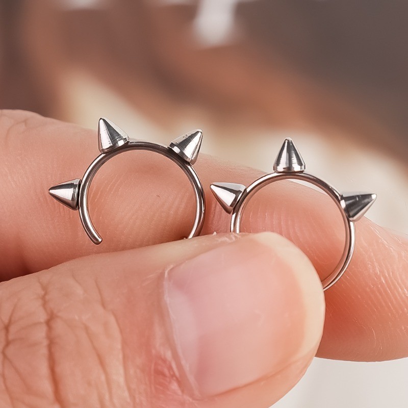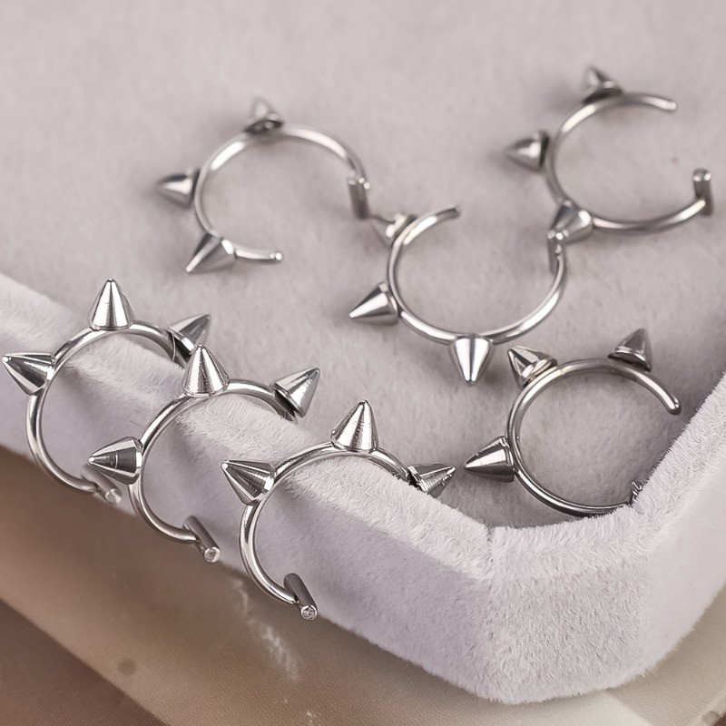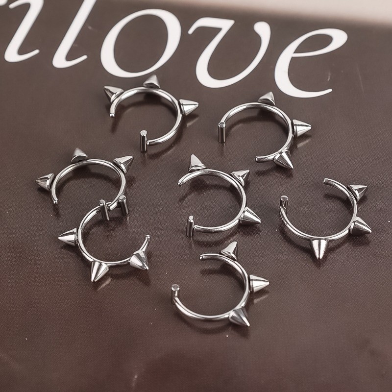 Spike Clip on Lip Ring - Gothic, Punk, Y2K - Steel Titanium - Unisex - Fake Piercing Body Jewelry Accessories - Non piercing Lip Ear Nose Clips - Cone Septum Ring