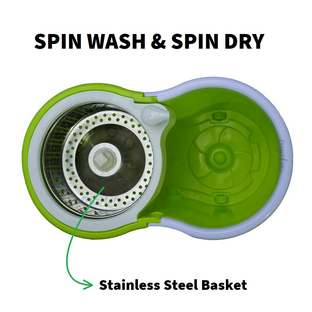 Spin Mop Spinner Microfiber Mop Cloth Floor Mop Lantai 5L Magic Mop Wheels Pail & SS Metal Basket CYL21SS Mop Lantai