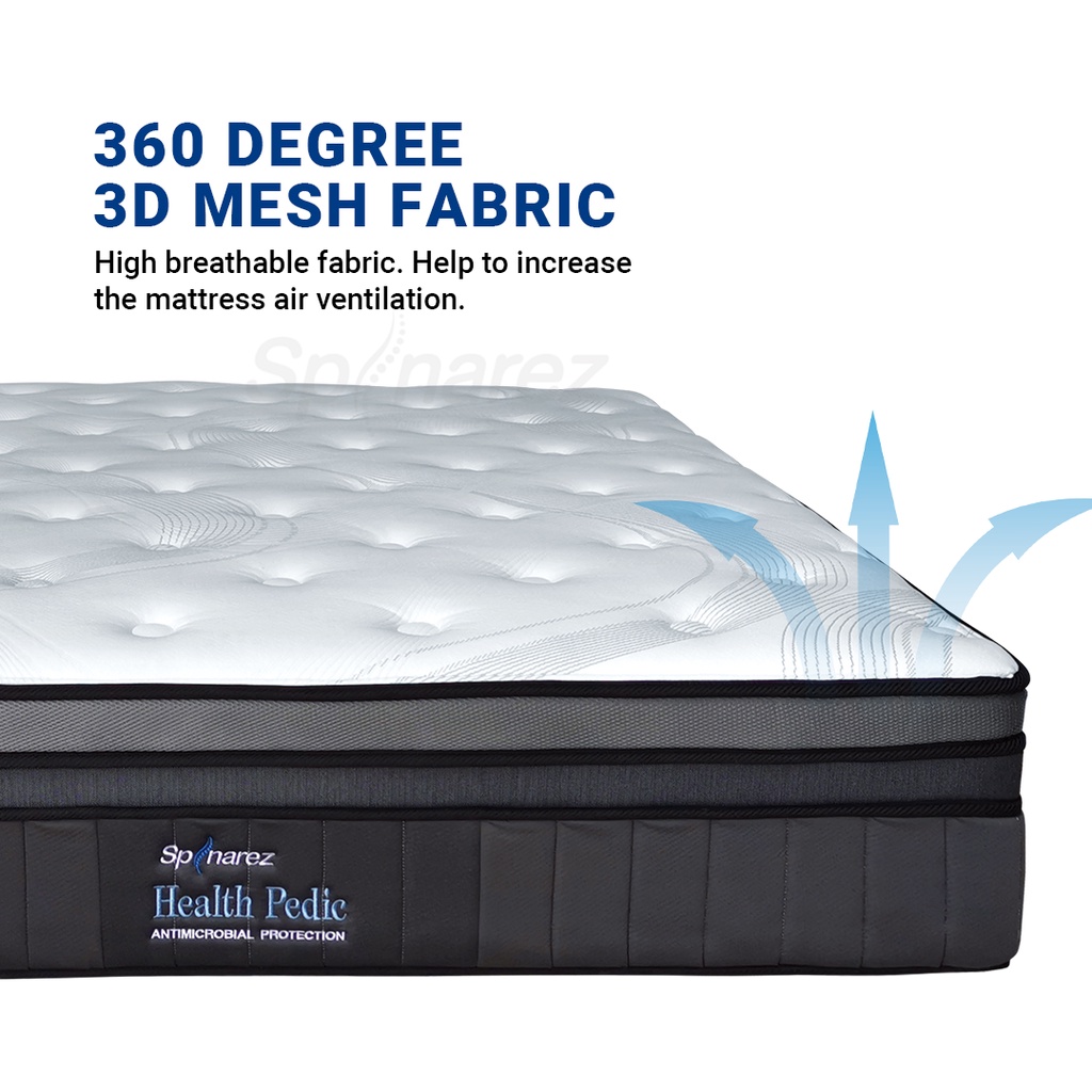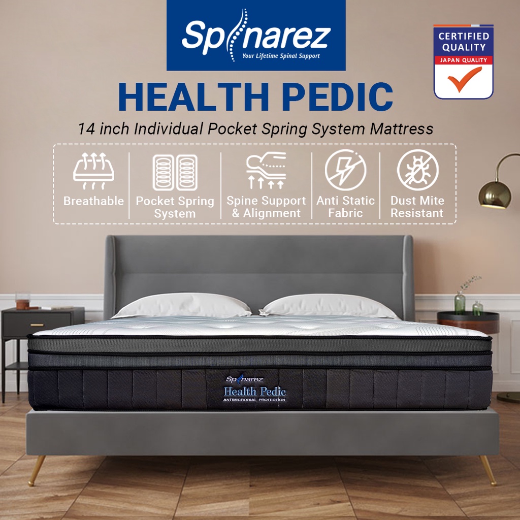 SpinaRez Health Pedic Tilam Mattress 14 inch Individual Pocket Spring System with HeiQ Viroblock Technology