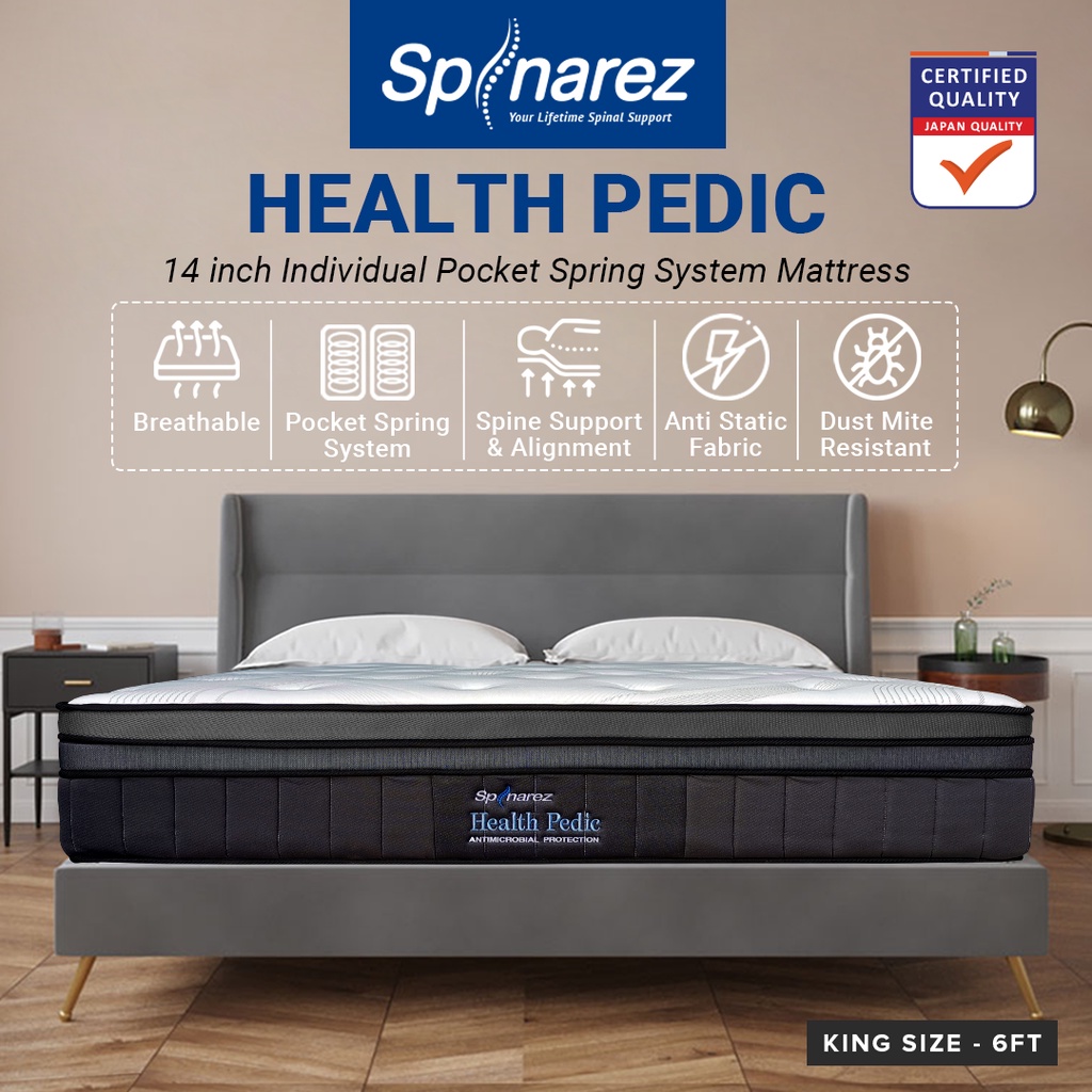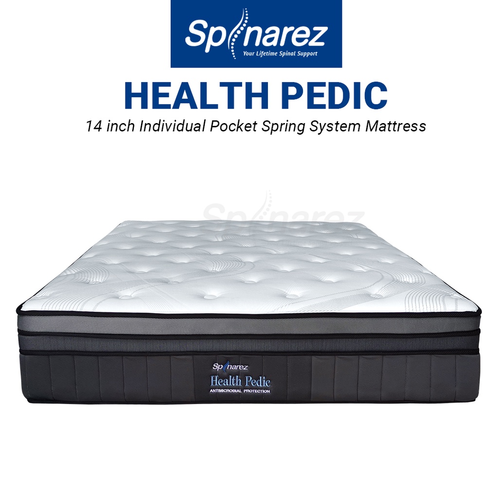 SpinaRez Health Pedic Tilam Mattress 14 inch Individual Pocket Spring System with HeiQ Viroblock Technology