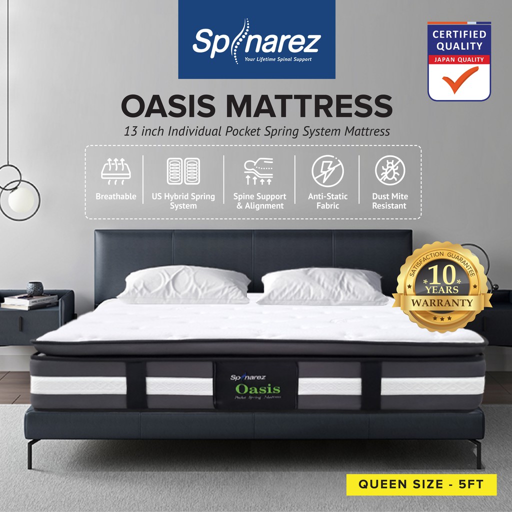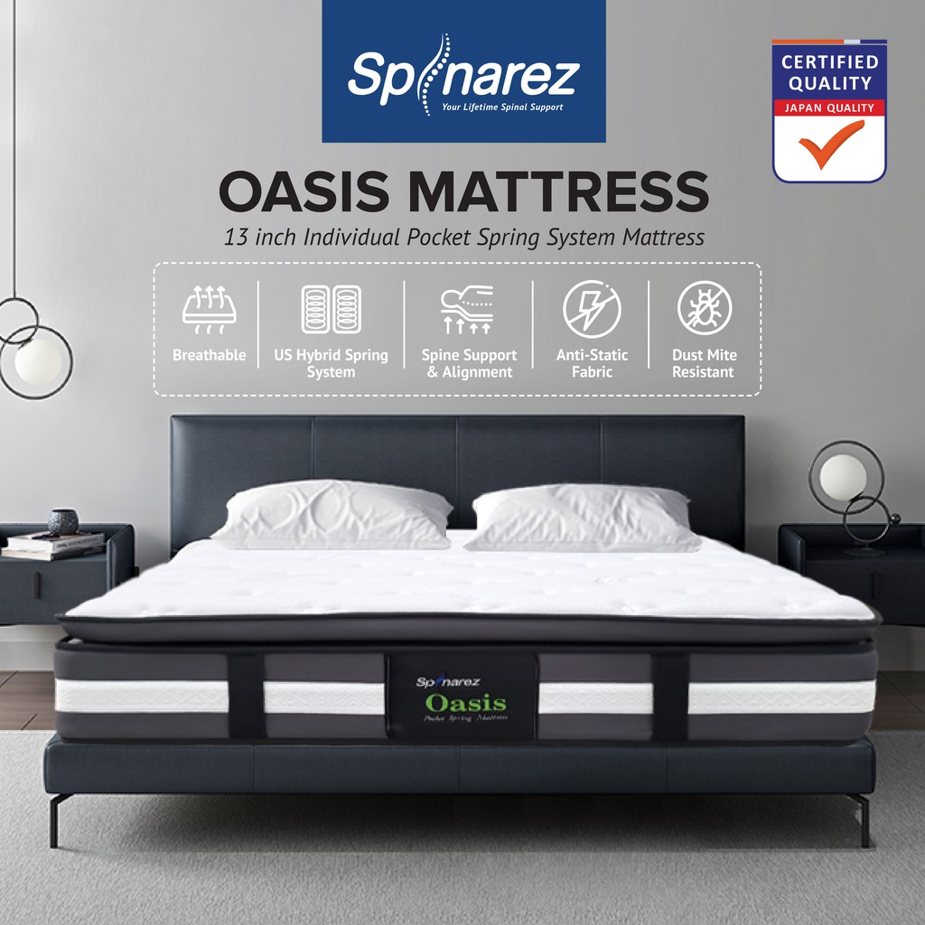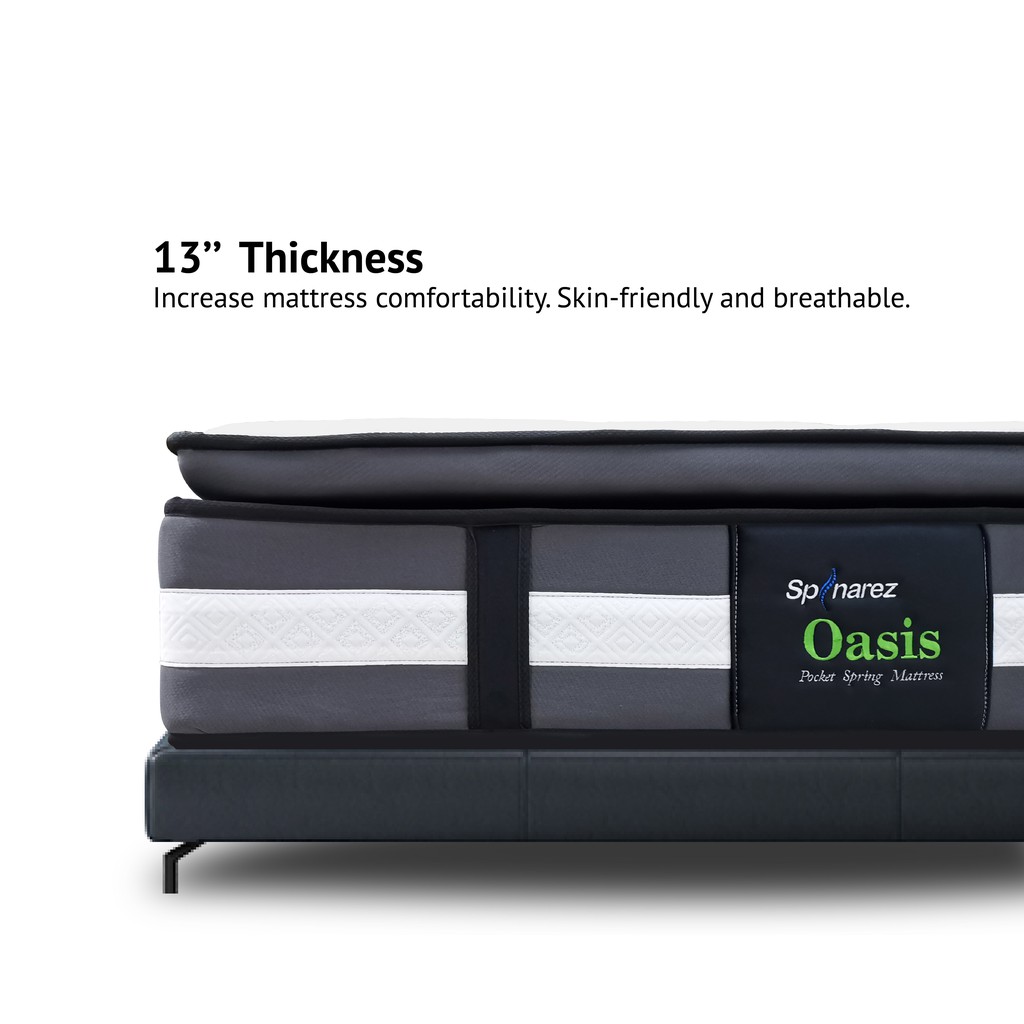 SpinaRez Oasis Tilam Mattress Individual Pocket Spring + Pillow Top Padding + Foam Encased Edge Support (13")