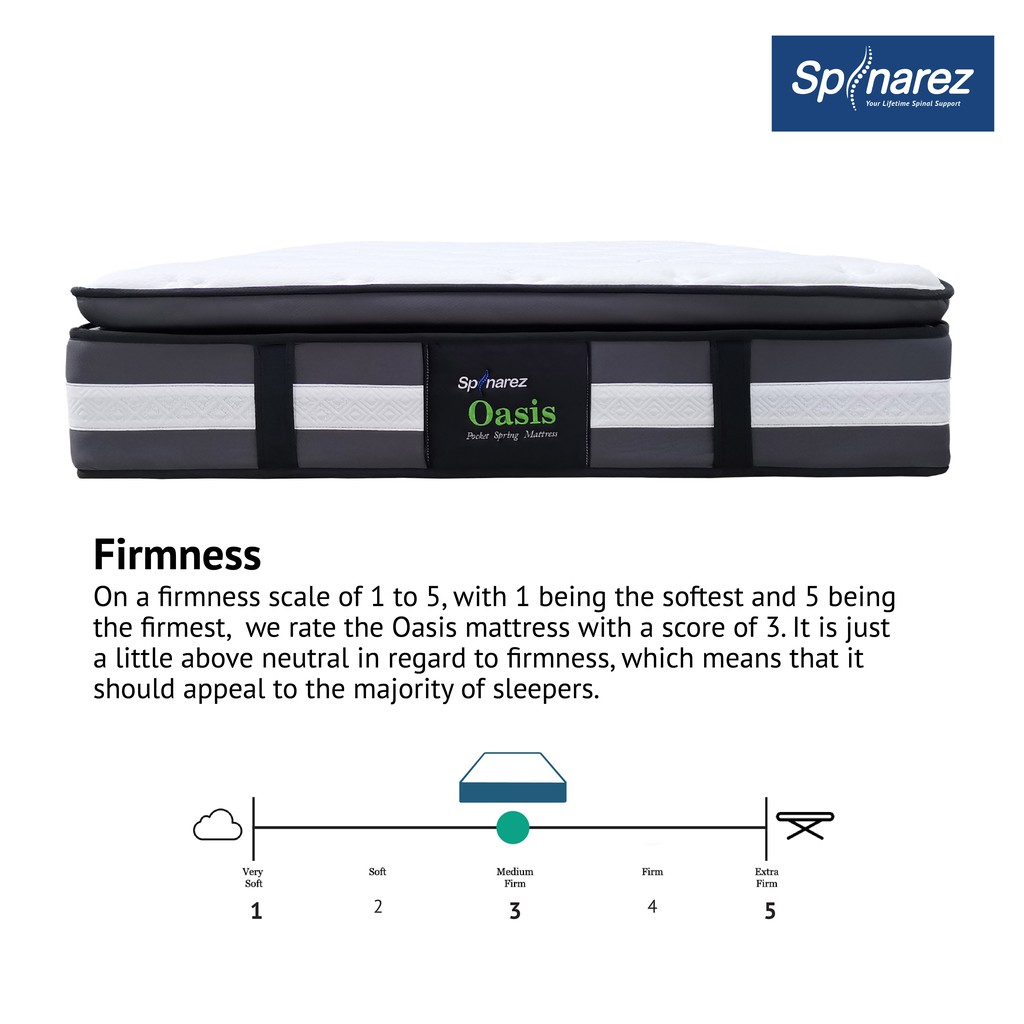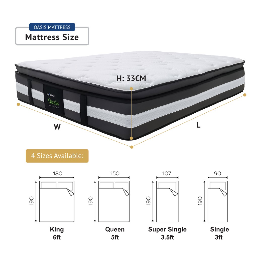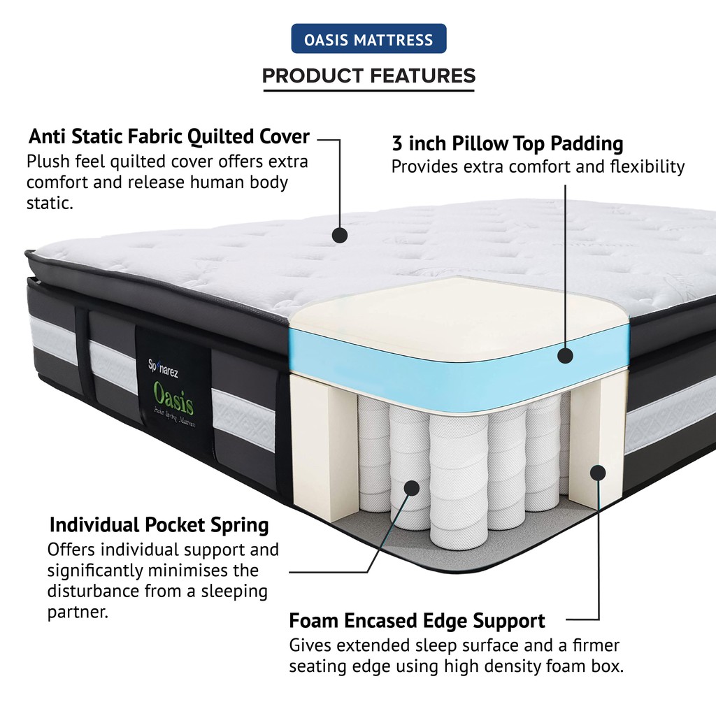 SpinaRez Oasis Tilam Mattress Individual Pocket Spring + Pillow Top Padding + Foam Encased Edge Support (13")