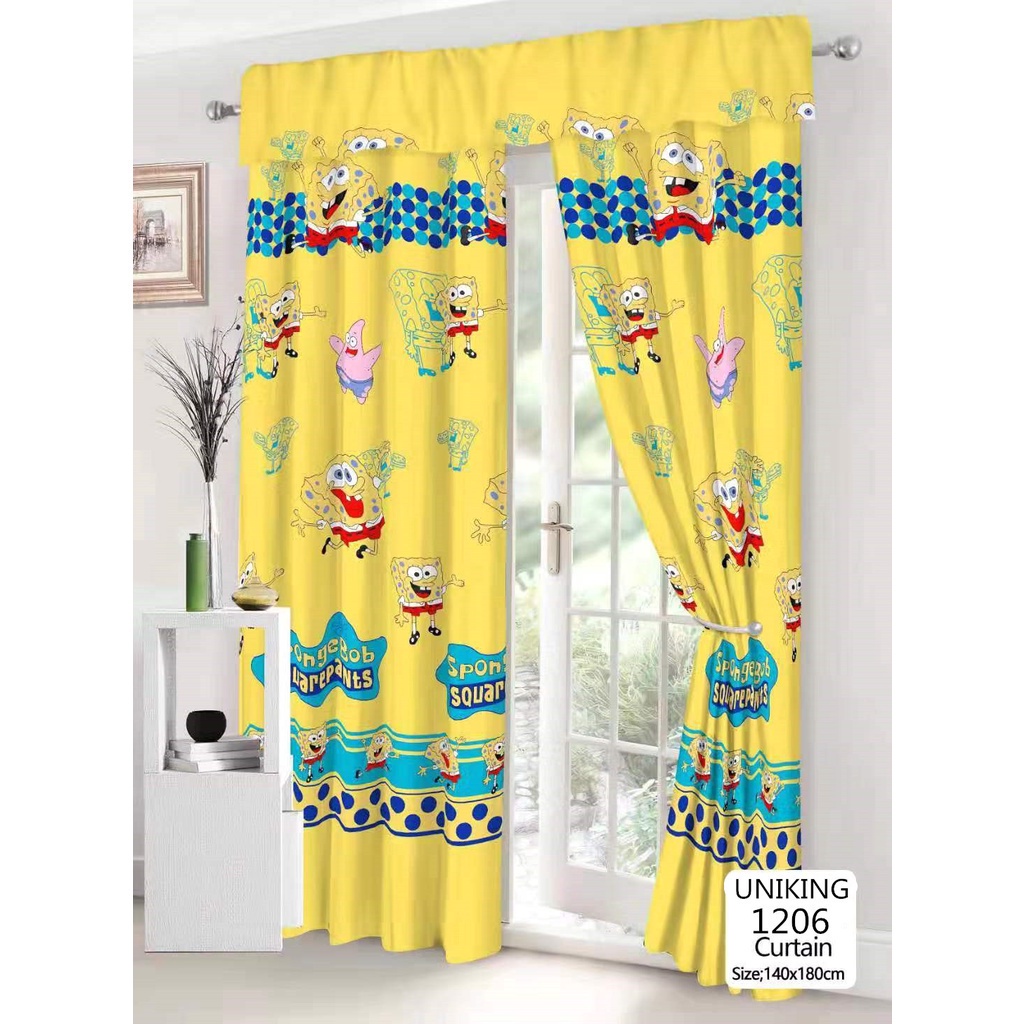 SpongeBob Curtains Home Decoration for Window Door Bedroom Cartoon Curtain 140cm X180cm(1PCS ) Langsir Tingkap Murah Langsir Blackout