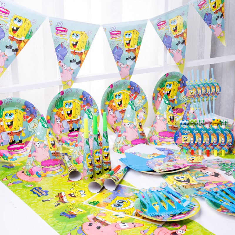 SpongeBob Patrick Star Birthday Party Decoration Cartoon Disposable Tableware Kids Favors Gift Toys Party Supplies