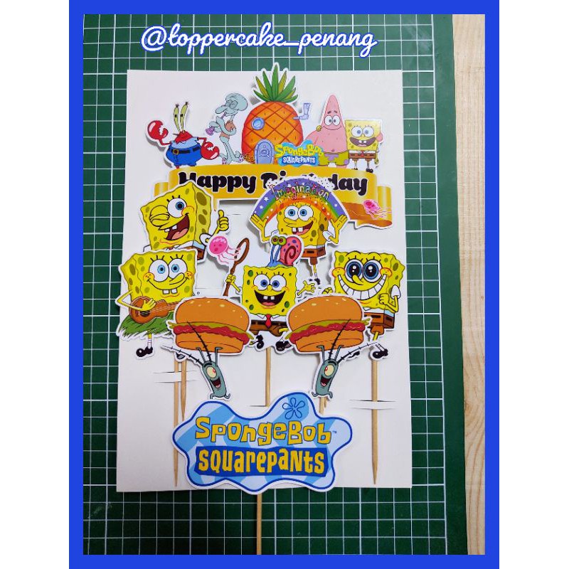 Spongebob Happy Birthday Decoration Set Cake Topper for Birthday Cake Custom Name