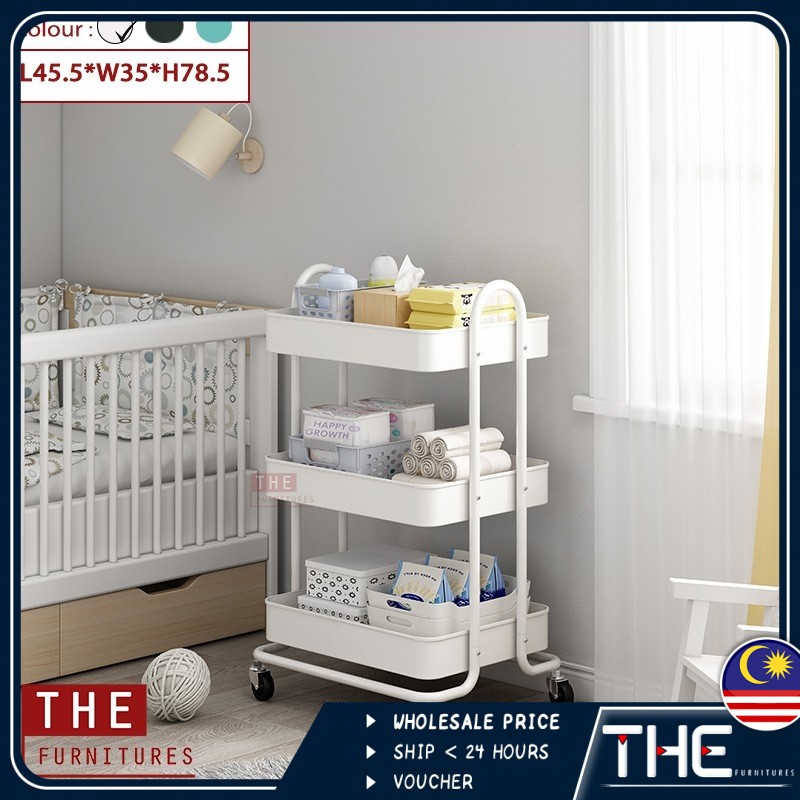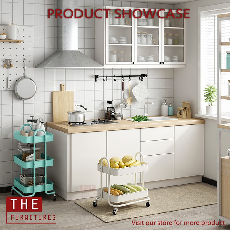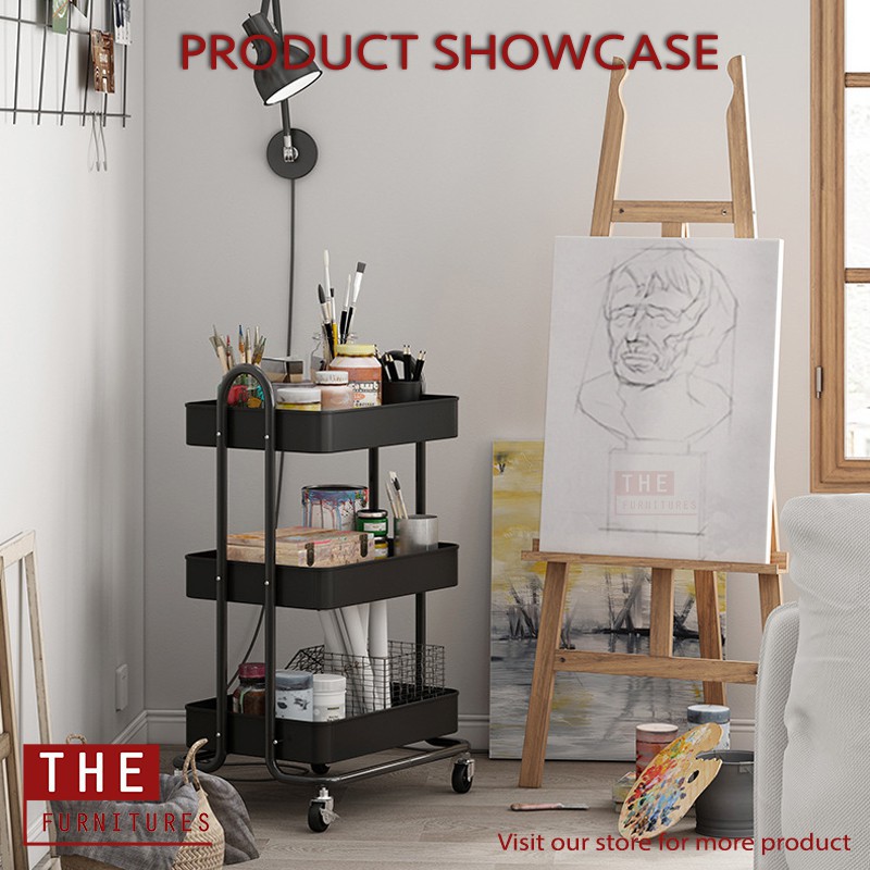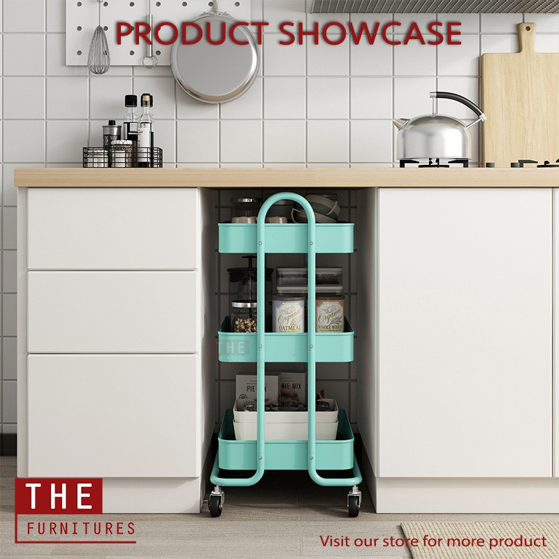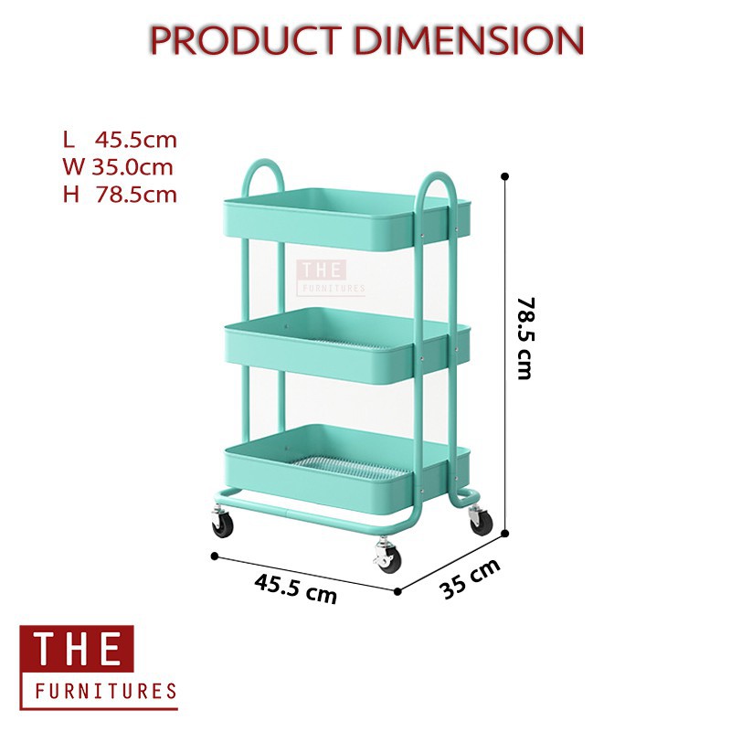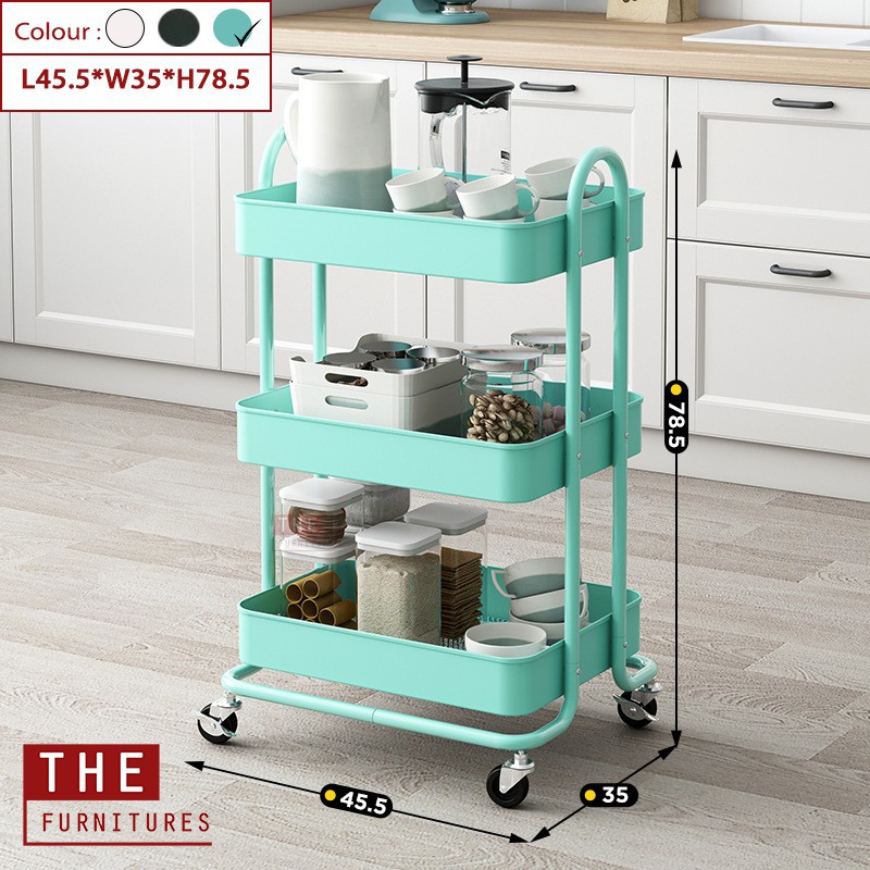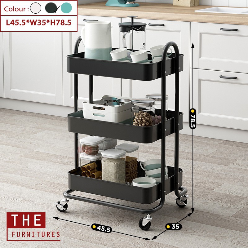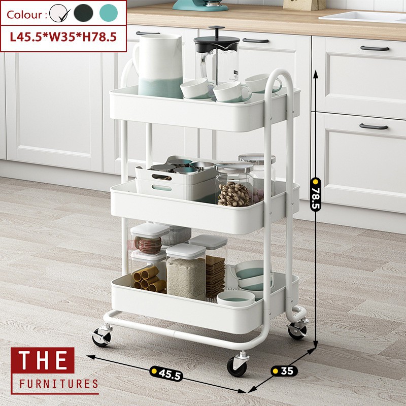 Spot THE 3 Tiers Movable Trolley Kitchen Rack with Rollers Simple Design(L45.5cm x 35cm x H78.5cm)