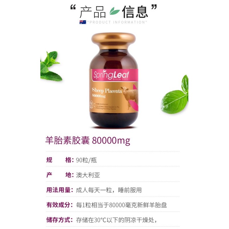 SpringLeaf Sheep Placenta 80000mg 90 Capsules
