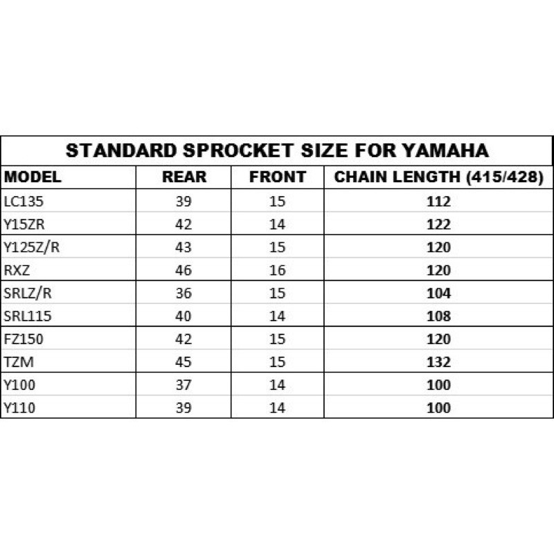 Sprocket Set 415 4lubng (LC135/RXZ/Y125z/SRL110Z/Y110(415 RKM GR415HSBT Gold Chain + Spoket Gold) 1 Set