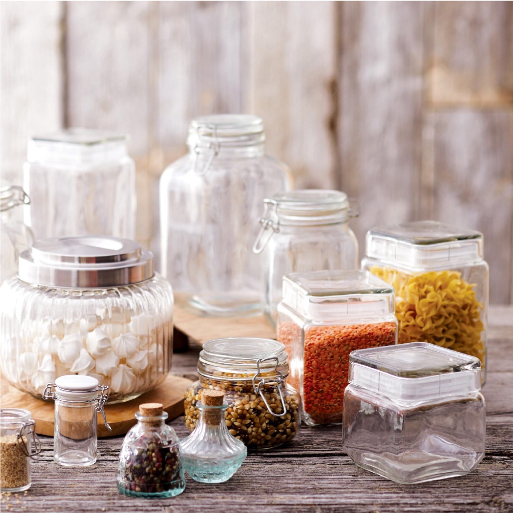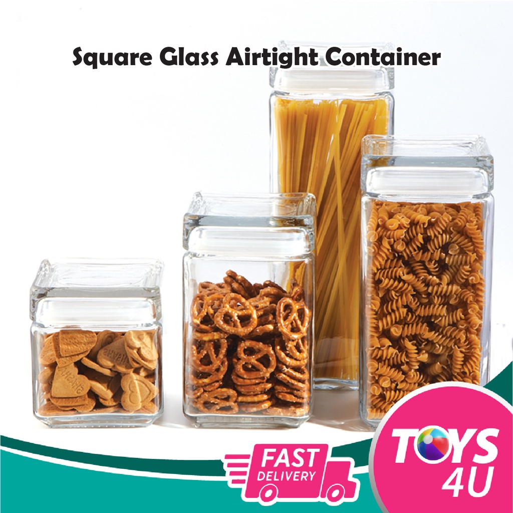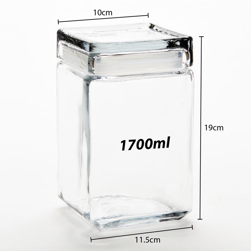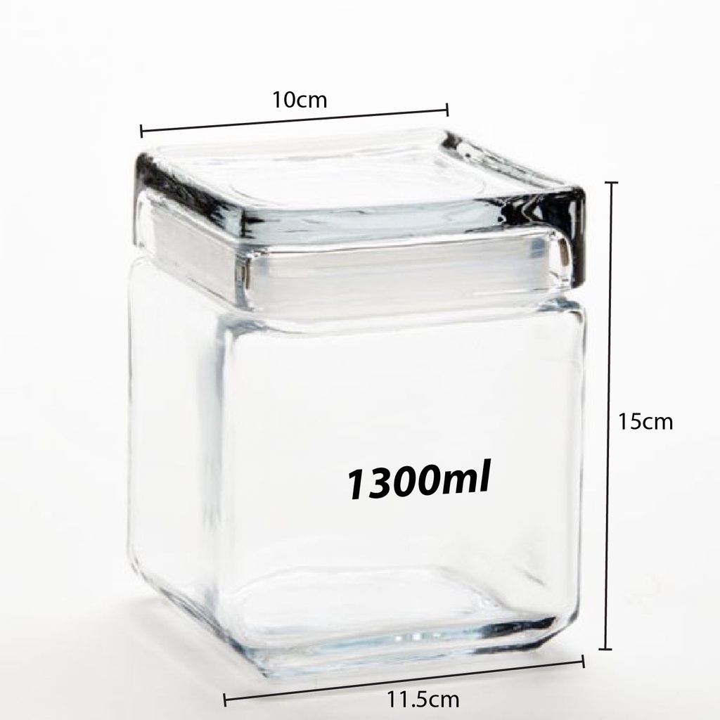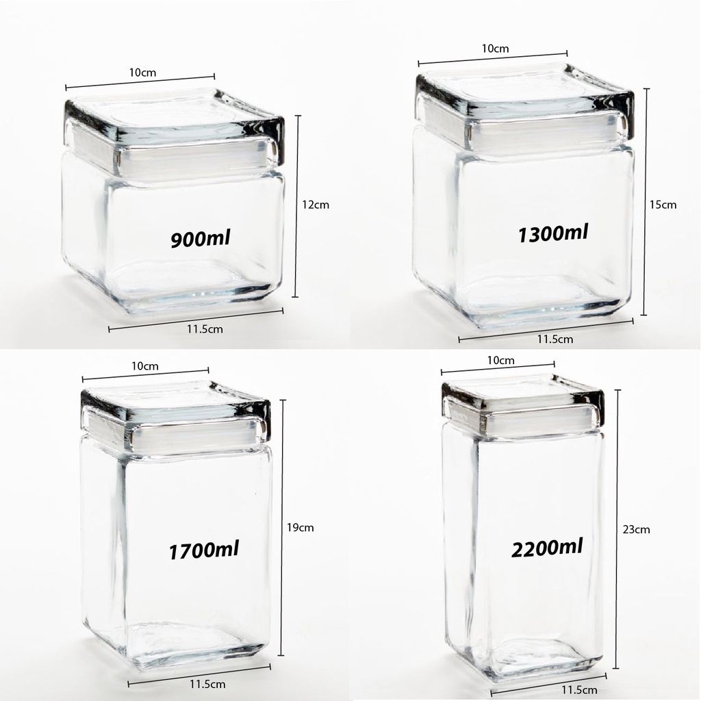 Square Glass Jar 900ml/1300ml/1700ml/2200ml Airtight Container Multipurpose Glass Food Storage Jar Container