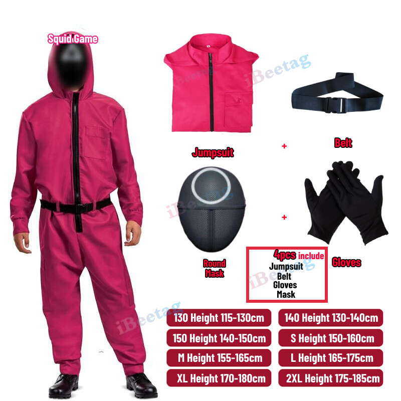 Squid Game Guard Cosplay Halloween Costume Pink Jumpsuit Role Playing Event Adult&Kids Costumes Movie Character Outfit