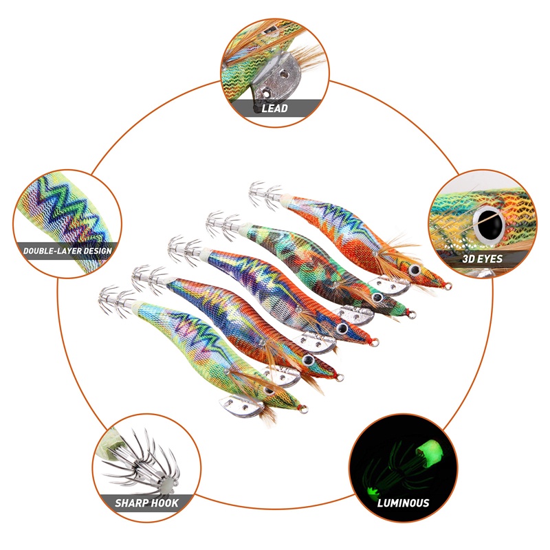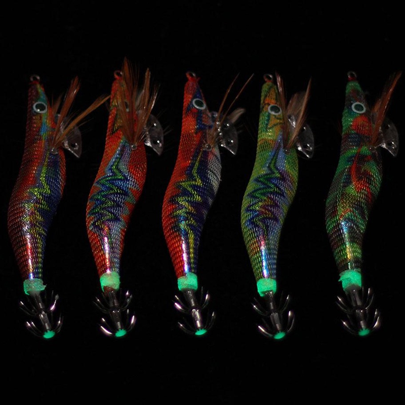 Squid Jig Fishing Lures Luminous Shrimp Wrapped Prawn Lures Bionic Plastic Shrimp 3D Eyes Artificial Spinner Lures Kit Octopus Cuttlefish Fish Hooks