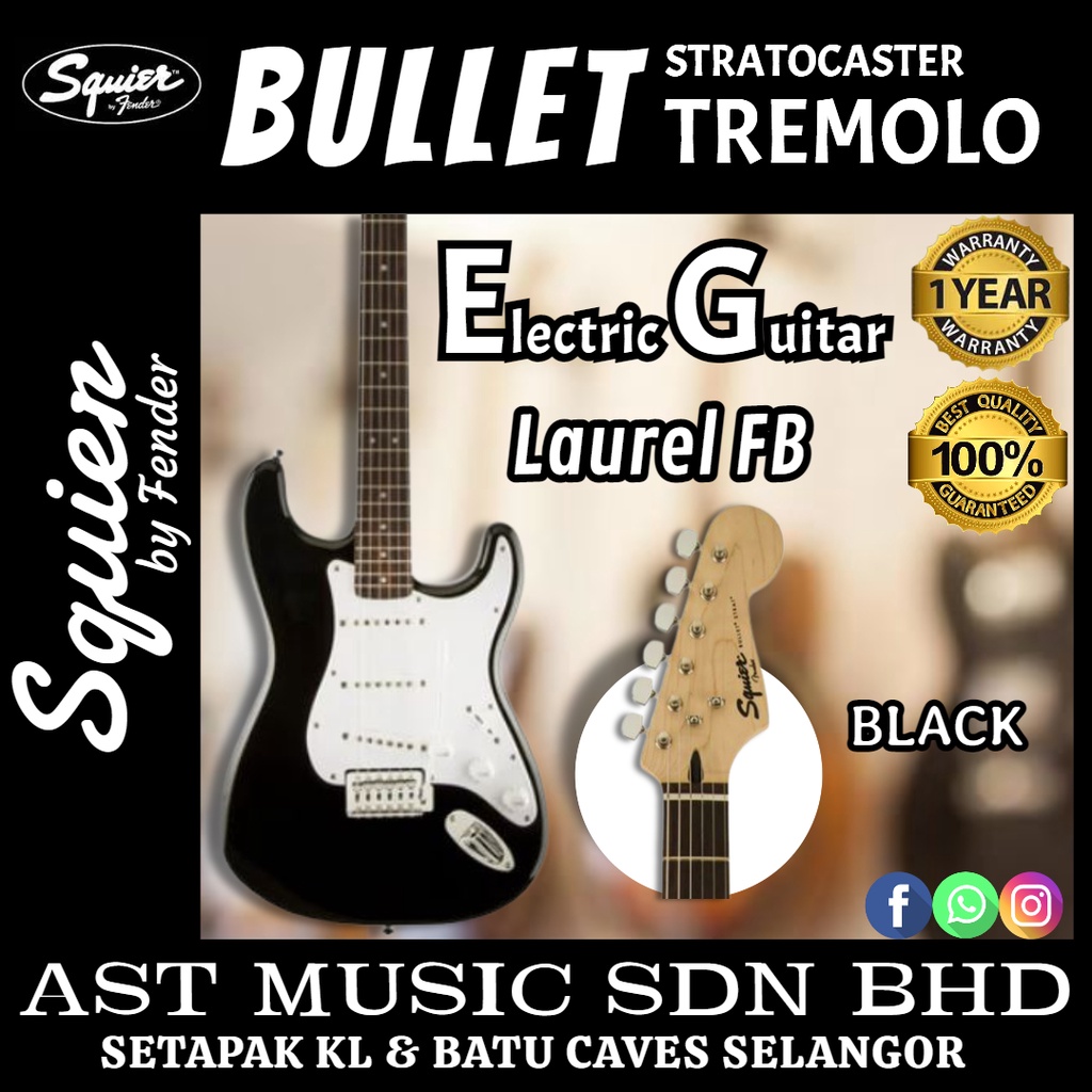 Squier Bullet Tremolo Stratocaster SSS Electric Guitar, Laurel FB - Black
