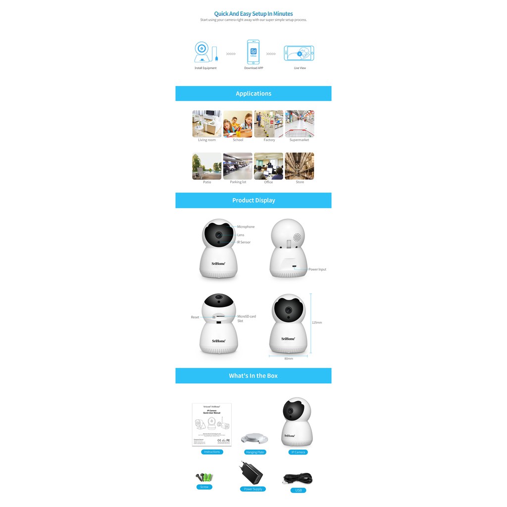 SriHome SH036 1296P (2340x1296) 3MP Super HD WiFi Camera CCTV IP Security Cam IR Night Vision + Full Color Night Mode