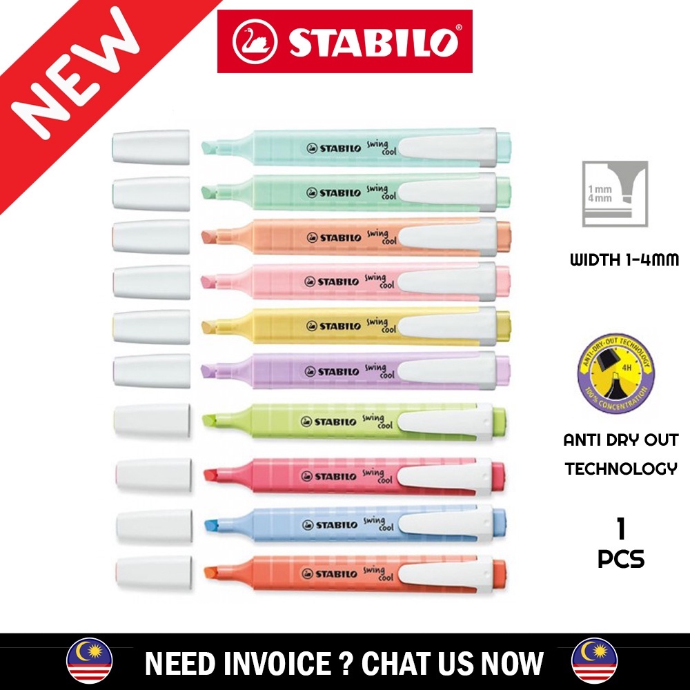 Stabilo Swing Cool Pastel Colour Highlighter/Stabilo Pastel Highlight Pen - (1'S)