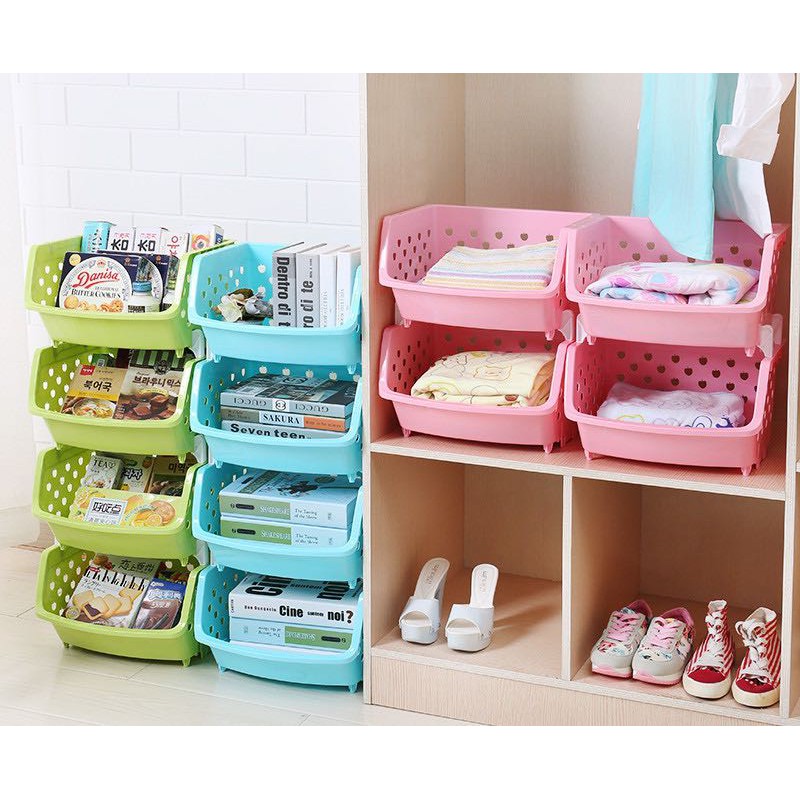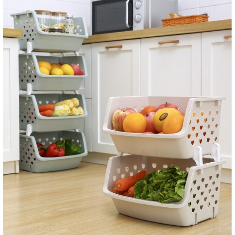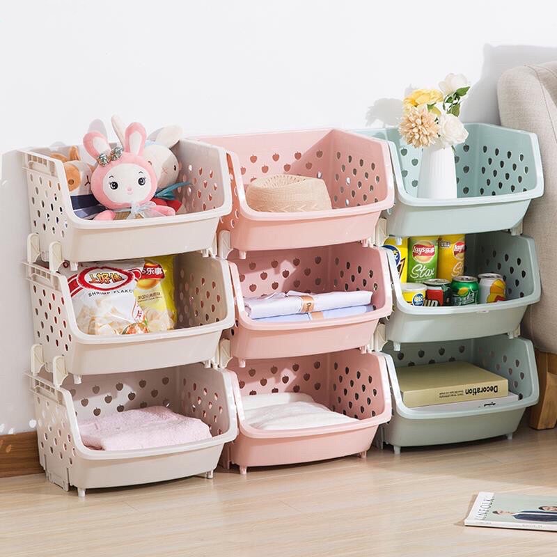 Stackable Toy Snack Fruit Storage Box Plastic Kitchen Bathroom Rack Vegetable Basket Rak Buah-buahan dan sayur-sayuran