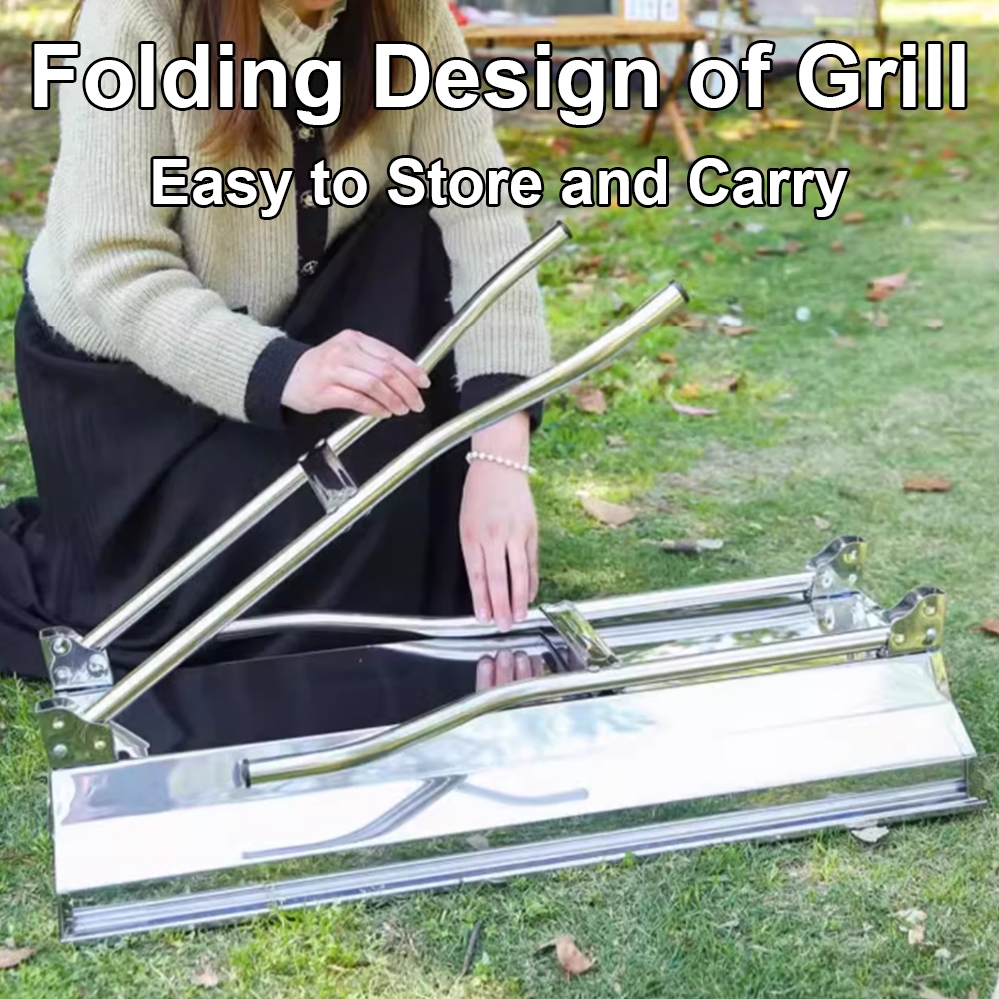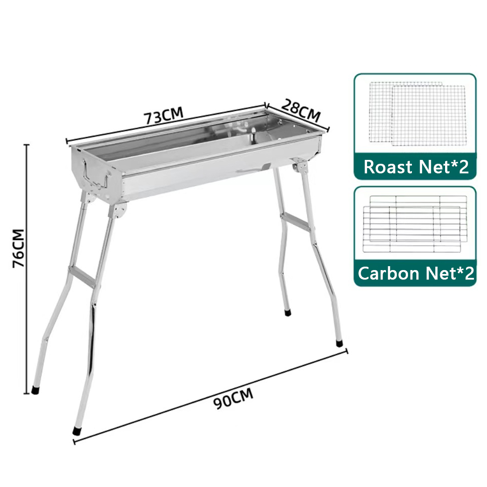 Stainless BBQ Grill Outdoor Portable Barbecue Stove bbq pit Charcoal Grill Camping Barbecue Rack Folding73*28*76CM 燒烤架
