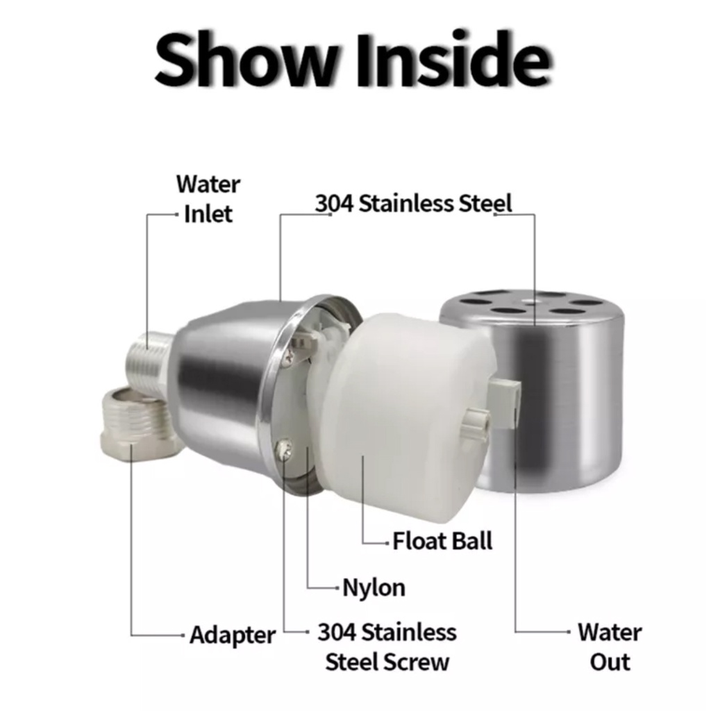 Stainless Steel 304 Automatic Water Level Control Float Valve Mount Inside 1/2'' Pelampung Air Automatik