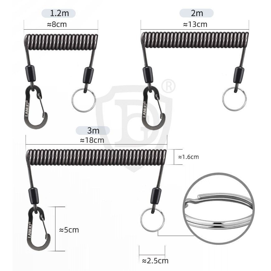 Stainless Steel Anti-lost Spring Rope for Fishing Retractable 7x7 Wire 1.2m 2m 3m TPU Cover Aluminum Buckle lanyard