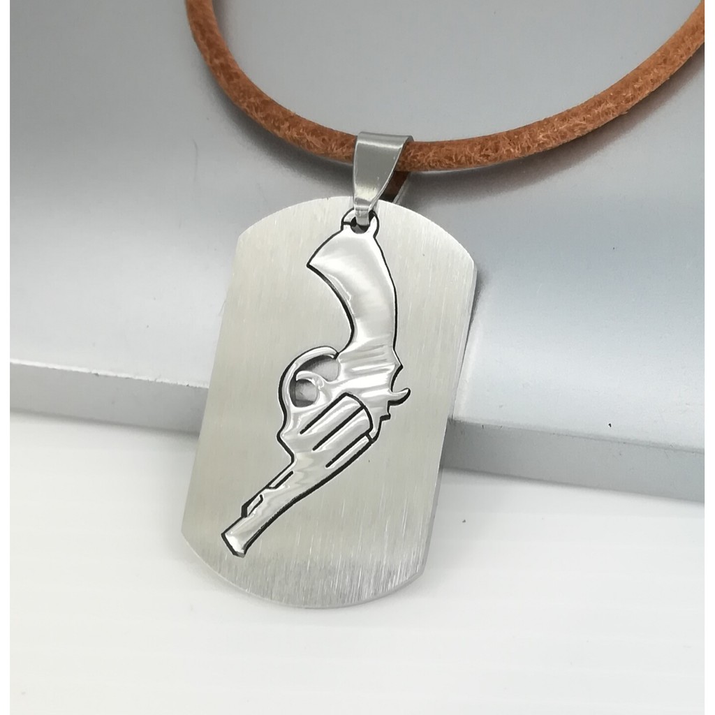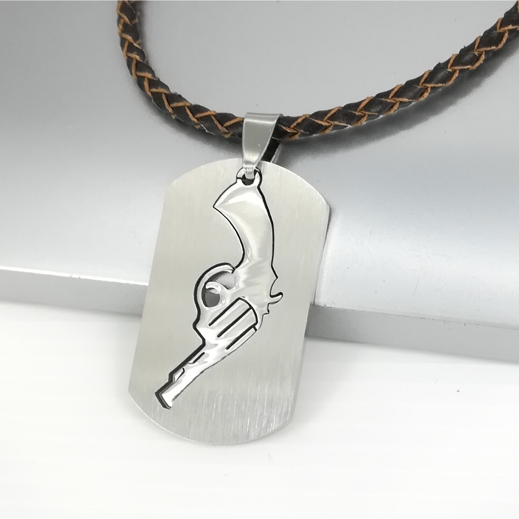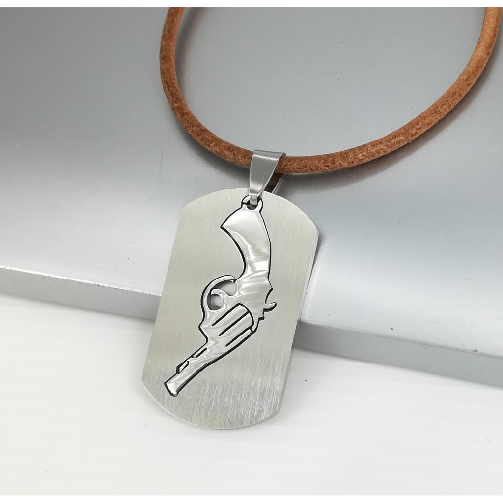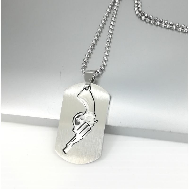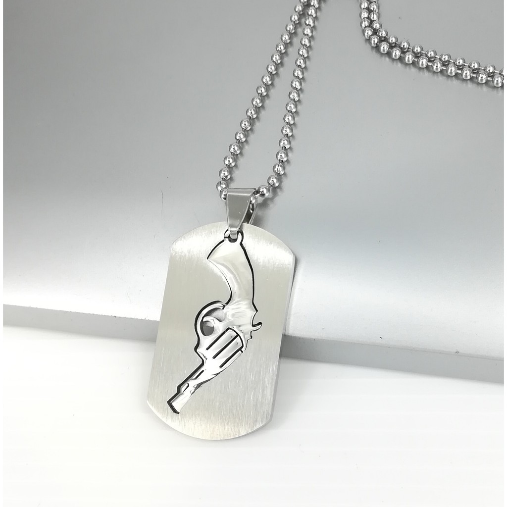 Stainless Steel Army Military Dog Tag Gun Pendant 24" Mens Necklace Chain