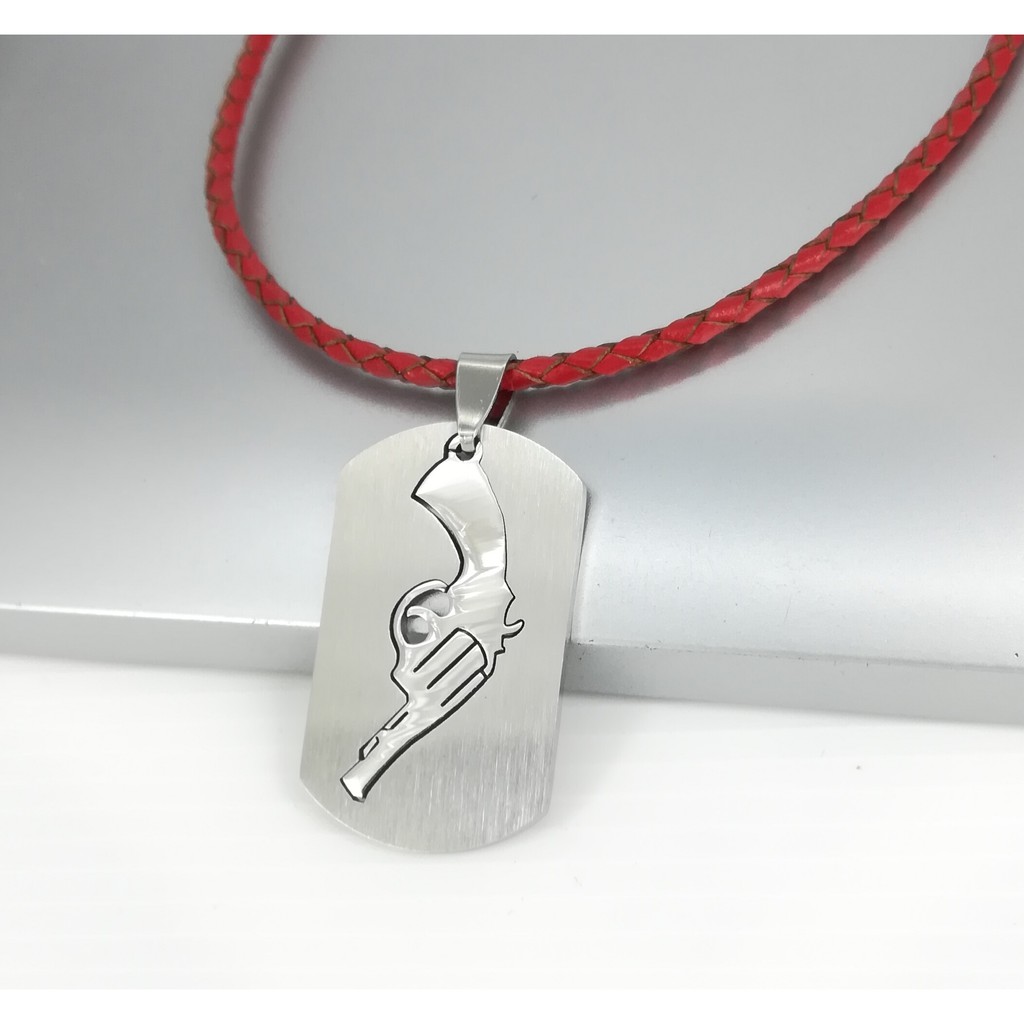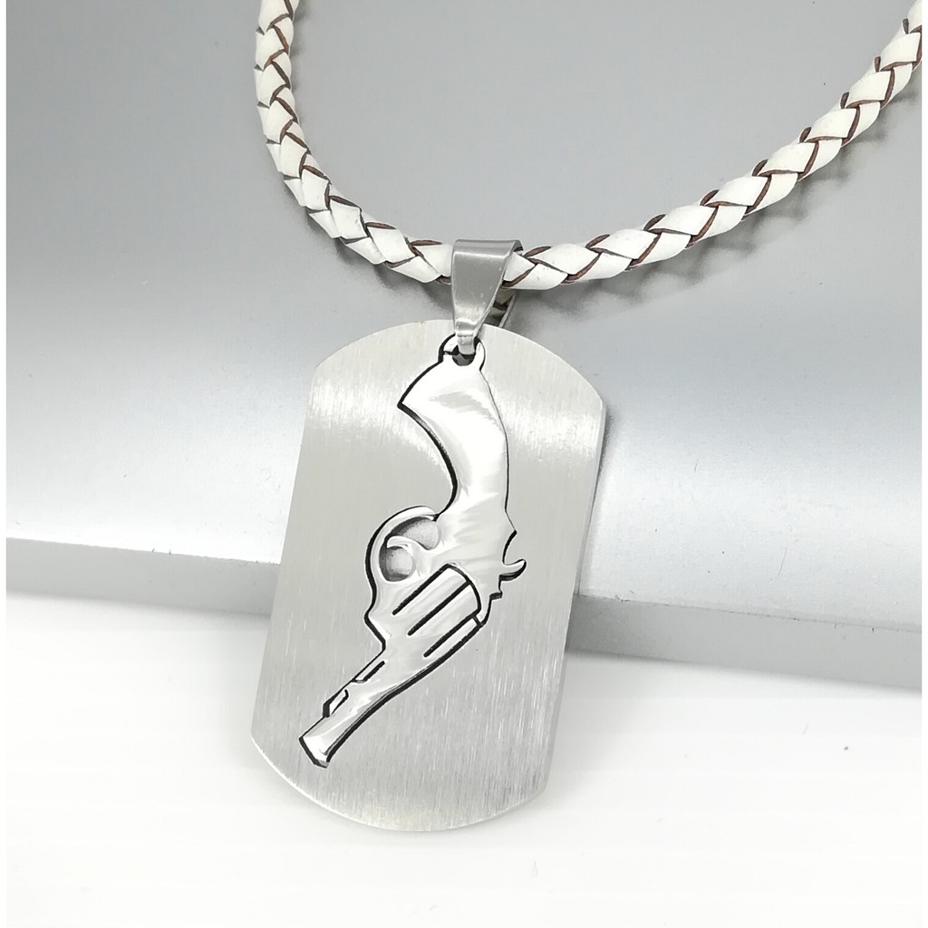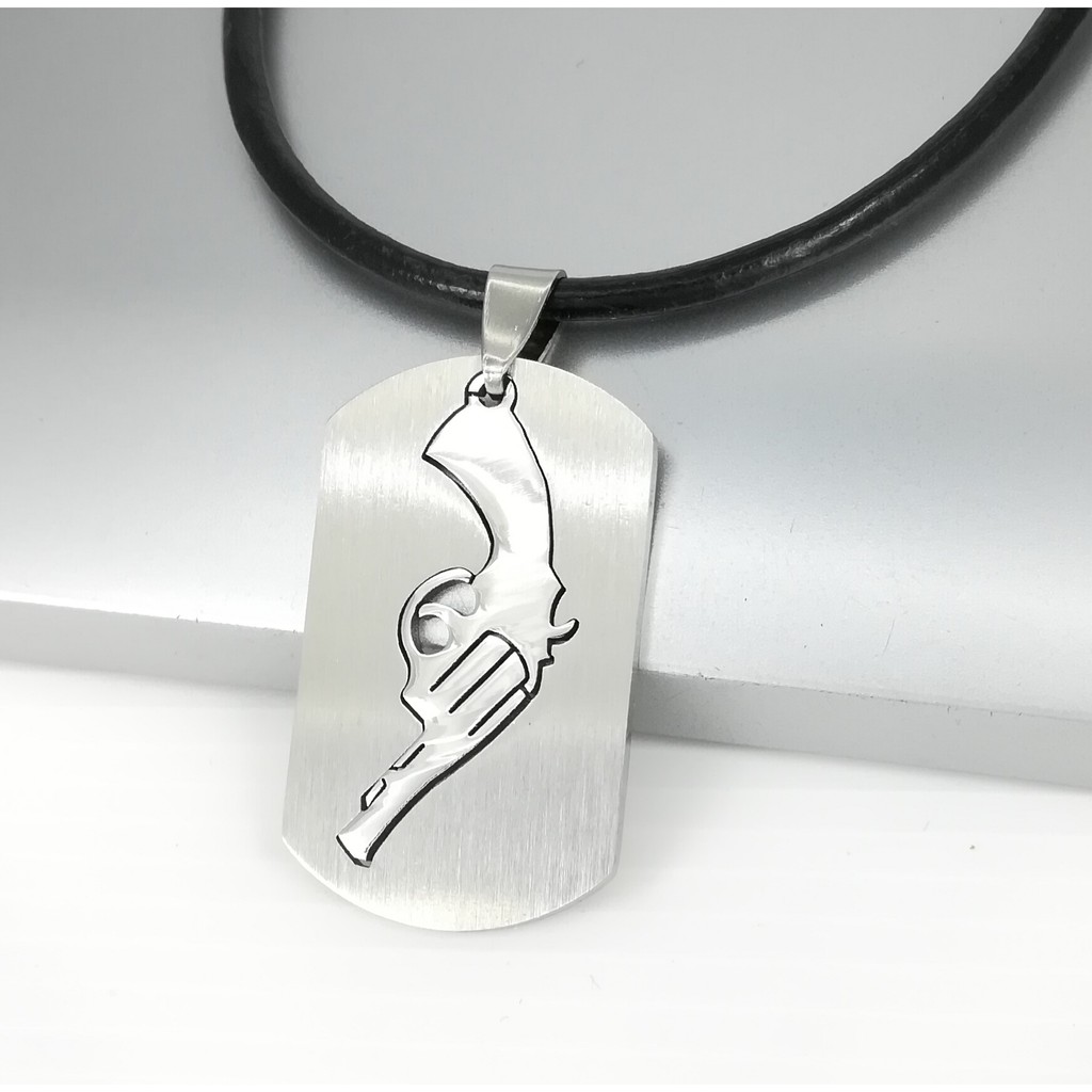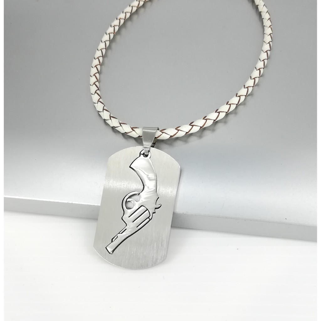 Stainless Steel Army Military Dog Tag Gun Pendant 24" Mens Necklace Chain
